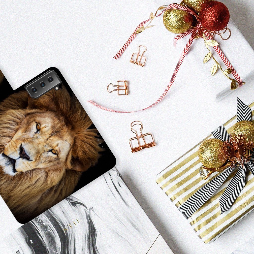 Samsung Galaxy S21 Plus Telefoonhoesje met Pasjes en met magnetische sluitclip Leeuw