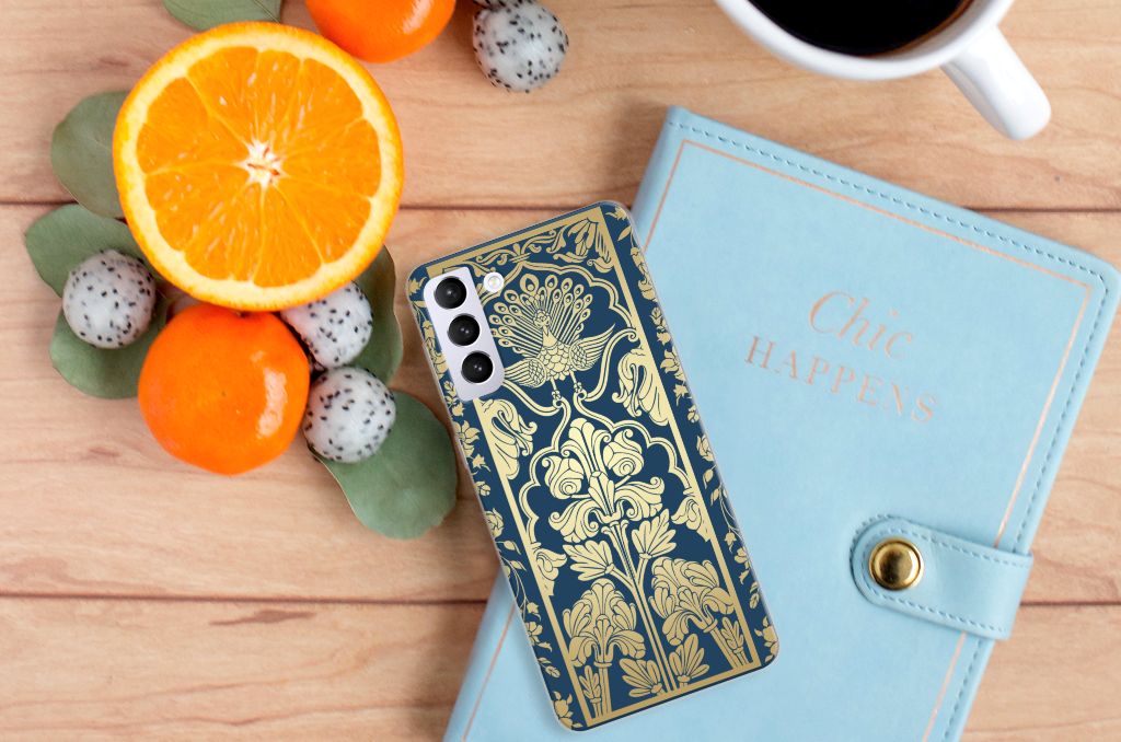 Dit koninklijke hoesje met Beige Flowers ziet er oogverblindend uit. De beige kleur geeft dit design hoesje een super fraai en chique uiterlijk. Je voelt jezelf de koning te rijk als je jouw telefoon beschermt met deze elegante case. De donkerblauwe achtergrond geeft dit design hoesje extra uitstraling en combineert goed met beige. Het hoesje ziet er zeer kostbaar uit, maar is erg goedkoop. Voor een zeer bescheiden bedrag ben je in het bezit van dit design hoesje. De case geeft jou en je Samsung Galaxy S21 Plus extra status. Voor goedkope design hoesjes zit je goed bij B2C Telecom. Het design staat op een TPU Case. Dit hoesje wordt alleen aan de bovenkant bedrukt en is zeer flexibel. De randen van het hoesje blijven transparant en worden niet bedrukt. Met dit hoesje past jouw telefoon altijd in je broekzak.
