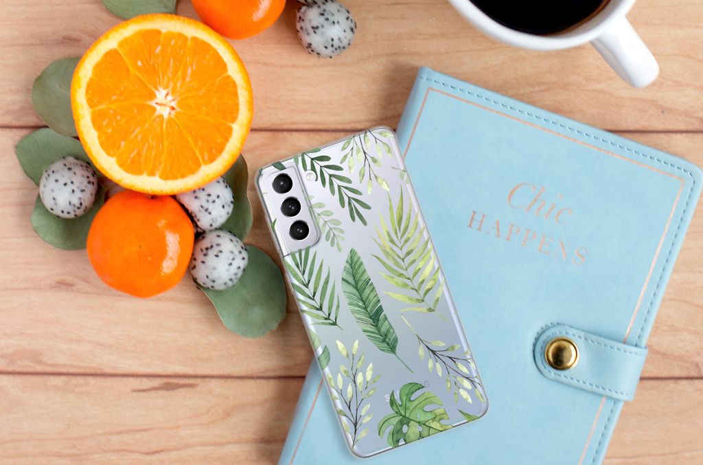 Je voelt je verbonden met de natuur als je kiest voor deze Samsung Galaxy S21 Plus TPU Case met print Leaves. De print bestaat uit verschillende groene bladeren en dit zorgt voor een fraai decoratief geheel. Met dit patroon van groene bladeren creëer je een frisse uitstraling voor jouw smartphone. Jij doet er verstandig aan om je telefoon te beschermen met dit design hoesje met groene bladeren, die staan op een tpu case. Dit tpu hoesje kenmerkt zich onder meer door de opstaande randen aan de voorzijde, waardoor bij een val van de smartphone het scherm de grond niet raakt. Voel jij jezelf gezond met een beeld van groene bladeren, dan is deze tpu case met print een uitstekende optie. Het beschermt jouw telefoon aan de achterkant en zijkanten zeer goed. Het TPU is zeer flexibel en onbreekbaar. De zijkanten van de case blijven transparant. Kijk ook eens naar onze andere hoesjes met bladeren of misschien maak je zelf wel gewoon liefst je eigen hoesje met eigen foto’s van bladeren.