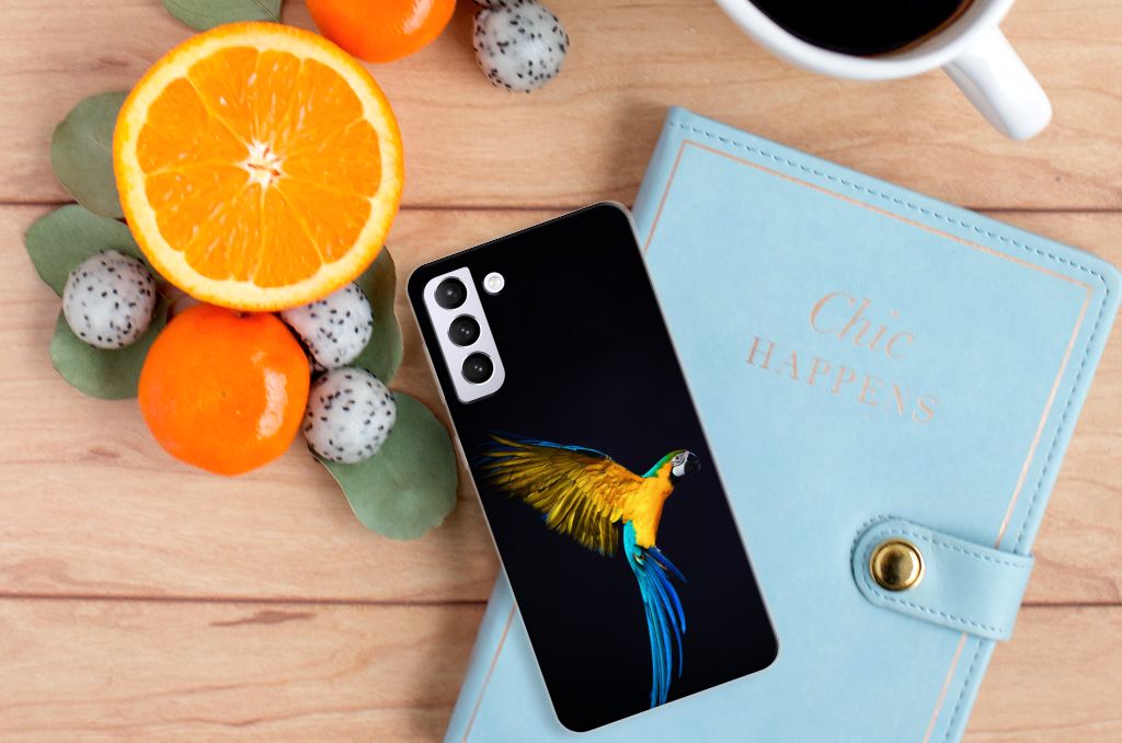 Dit design hoesje met Papegaai tegen een zwarte achtergrond is een zeer flexibele bescherming voor jouw smartphone. Dit komt vooral omdat deze print op een tpu case staat. Dit is een zeer buigzaam hoesje, dat de telefoon vooral aan de achterkant en zijkanten beschermt. De bovenkant van de Samsung Galaxy S21 Plus TPU Hoesje wordt bedrukt met deze schitterende print. De zijkanten blijven doorzichtig. Papegaaien zijn erg sociale vogels die voldoende aandacht en gezelschap nodig hebben. Als je er voor kiest om een papegaai aan te schaffen, is het een goed idee om een koppeltje te nemen. Koop je meerdere tpu cases met een papegaai, dan ga je automatisch minder betalen per hoesje. Wij hanteren een systeem van bundelkorting. Dus koop dit hoesje met opstaande randen voor een spotprijs.