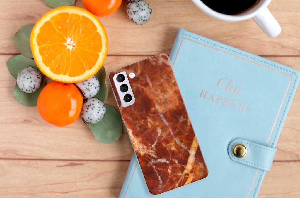 Dit design hoesje met Marmer Bruin is voor de artistieke personen onder ons. De Grieken en Romeinen wisten het al te waarderen door het als bouw- en bekledingsmateriaal toe te passen. Naast het witte Carrara marmer met haar zacht grijze geaderde belijning zijn de diverse soorten in een ruim kleurenpallet te krijgen. We hebben verschillende kleuren op design hoesjes gezet, zoals in dit geval bruin marmer. Dit is een Samsung Galaxy S21 Plus TPU Siliconen Hoesje met marmer in bruine kleur. Het marmer wordt bedrukt op de voorkant van een tpu case, die beschikt over opstaande randen aan de voorkant en heel goed combineert met een screenprotector. De rijkheid aan kleuren en varianties in afwerking geeft ontwerpers de vrijheid om met marmer hele mooie architectonische projecten te realiseren. Wij hebben onze designer ook veel vrijheid gegeven. Het resultaat zie je terug in deze tpu case met bruin marmer, die jouw smartphone goed beschermt. De zijkanten van de case worden niet bedrukt met marmer.