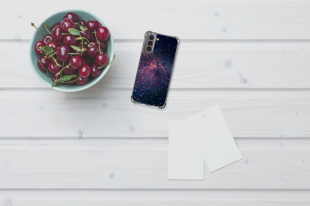 Ben je op zoek naar een uniek telefoonhoesje voor je Samsung Galaxy S21? Dan ben je bij B2C Telecom aan het juiste adres! Speciaal voor jou hebben we dit prachtige Stars design in onze collectie hoesjes opgenomen. Het design wordt bedrukt op een Shockproof Case en is gemaakt van flexibel rubber. Het hoesje is perfect voor de actieve smartphonegebruiker door de opstaande randen/hoeken. Denk aan mensen die veel sporten, reizen of wandelen en net iets meer zekerheid willen als het op hun geliefde telefoon aankomt. Het design wordt alleen aan de bovenkant van het hoesje bedrukt en de randen blijven transparant. Aan de zijkanten zijn uitsparingen gemaakt waardoor je met gemak alle knoppen en poorten kunt bedienen. Wij adviseren om dit hoesje in combinatie met een screenprotector te gebruiken voor een langere levensduur van je telefoon. Wil je dit hoesje nog iets extra's geven? Voeg dan gratis je naam of een quote toe! Is dit design hoesje toch niet helemaal wat je zocht? Ontwerp dan zelf een hoesje in ons ontwerpprogramma.