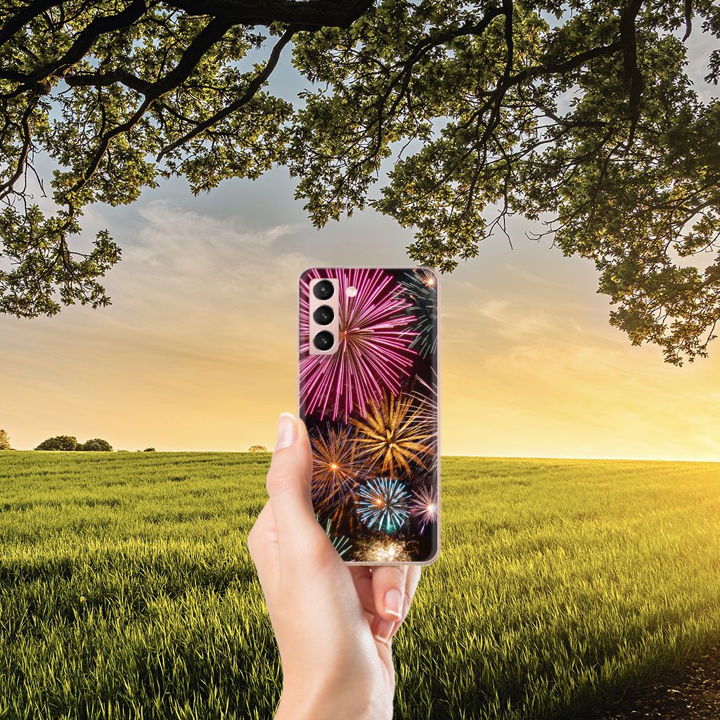 Deze Samsung Galaxy S21 Silicone Back Cover levert gegarandeerd Vuurwerk op. Kijk alleen al eens naar de print van siervuurwerk, in zeer veel verschillende kleuren. Als je dit hoesje ziet kun je bijna niet geloven dat sommige gemeenten in Nederland overwegen om vuurwerk te verbieden. Er gebeuren weliswaar ongelukken mee, maar zoiets schitterends als op deze tpu case met vuurwerk wil je toch gewoon niet missen. Bovendien beschermt dit hoesje jouw smartphone ook nog eens erg goed. De bovenkant van dit hoesje wordt bedrukt, de zijkanten blijven doorzichtig. De case is gemaakt van schokabsorberend materiaal en past altijd in je broekzak. Onder alle omstandigheden zal deze TPU case perfect functioneren, ook als je met nieuwjaar vuurwerk aan het afsteken bent. Zorg dan overigens wel dat je zelf ook voldoende afgeschermd bent van het vuurwerk.