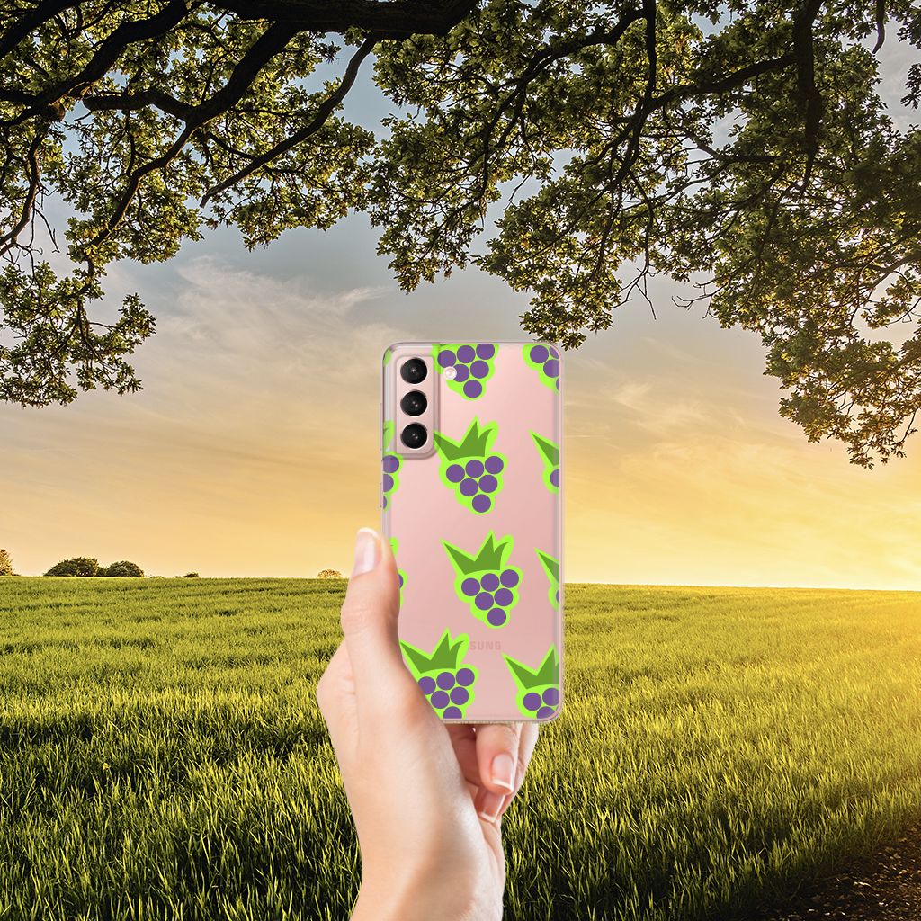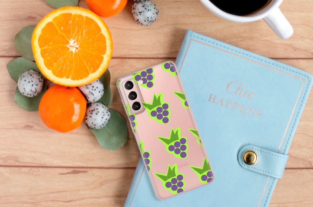 Druiven worden ook wel de ‘koningin van het fruit’ genoemd. Dus komen ze uiteraard aan bod in ons assortiment design hoesjes. Een Samsung Galaxy S21 Siliconen Case met een tros blauwe druiven maakt je ontzettend trots. Juist omdat het zo goed past bij jouw smartphone. Doordat er veel verschillende soorten druiven bestaan - groene, rode en zelfs zwarte - is het aanbod ontzettend groot. Ons aanbod tpu cases met blauwe druiven is ook zeer groot, je zult niet snel achter het net vissen. Het tpu hoesje met druiven design heeft opstaande randen, waardoor het scherm de grond niet raakt als jouw telefoon uit je handen valt. Dit leuke tpu hoesje met tros blauwe druiven is zeer flexibel en heeft opstaande randen. Ben je op zoek naar hoesjes met ander fruit erop? Je komt aan je trekken als je ons assortiment design hoesjes bekijkt. Het tpu is zeer flexibel. De randen van dit hoesje blijven transparant en worden niet bedrukt met blauwe druiven.