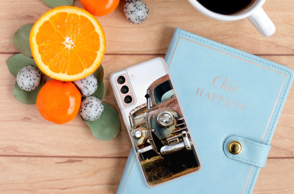Autoliefhebbers met een voorkeur voor vintage zullen in hun nopjes zijn met dit design hoesje. We hebben een boekhoesje met print van Vintage Auto speciaal op maat gemaakt voor jouw smartphone. Door de achtergrond van dit hoesje krijgt de case met vintage auto’s echt een mooie retro look. Een Samsung Galaxy S21 Siliconen Hoesje met foto is een zeer flexibel hoesje. Dit komt onder andere door het elastische en onbreekbare materiaal waarvan de hoes is gemaakt. Verder is de case zeer praktisch. Wat denk je bijvoorbeeld van de opstaande randen aan de voorkant. Verder beschikt de case ook nog eens over alle noodzakelijke uitsparingen. Een TPU case wordt alleen aan de bovenkant bedrukt. De randen blijven volledig doorzichtig.