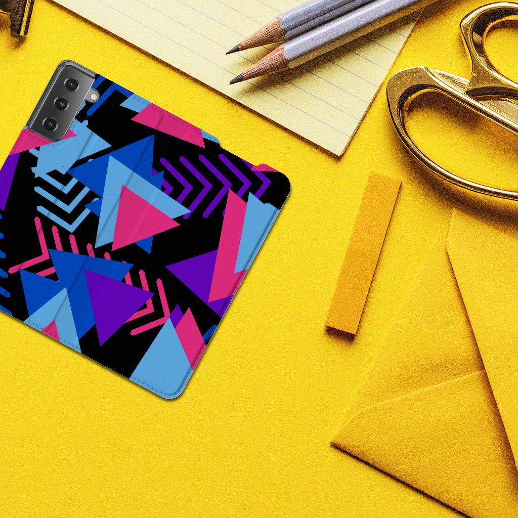 Dit fraaie hoesje met het design Funky Triangle is alles behalve eenvoudig en sober. Dat komt goed uit, want je hebt natuurlijk ook geen doorsnee telefoon gekocht. Mocht je dat wel hebben gedaan, dan wordt hij meteen speciaal als je een Samsung Galaxy S21 Stand Case koopt voor een spotprijsje. Een ding is zeker: opvallen ga je beslist met dit hoesje met paarse, roze en blauwe driehoeken. Jij zult in je element zijn met dit design hoesje met paarse, roze en blauwe driehoeken, omdat het er schitterend uitziet en jouw telefoon perfect beschermt. Het smartphonehoesje beschermt jouw telefoon aan alle zijden en beschikt over 1 opbergvakje en een speciale standaard. Het hoesje wordt afgesloten met een magneet aan de binnenzijde. De houder aan de binnenzijde is van TPU. Alle zijden van de stand case worden bedrukt. De paarse, roze en blauwe driehoeken maken de case helemaal af.