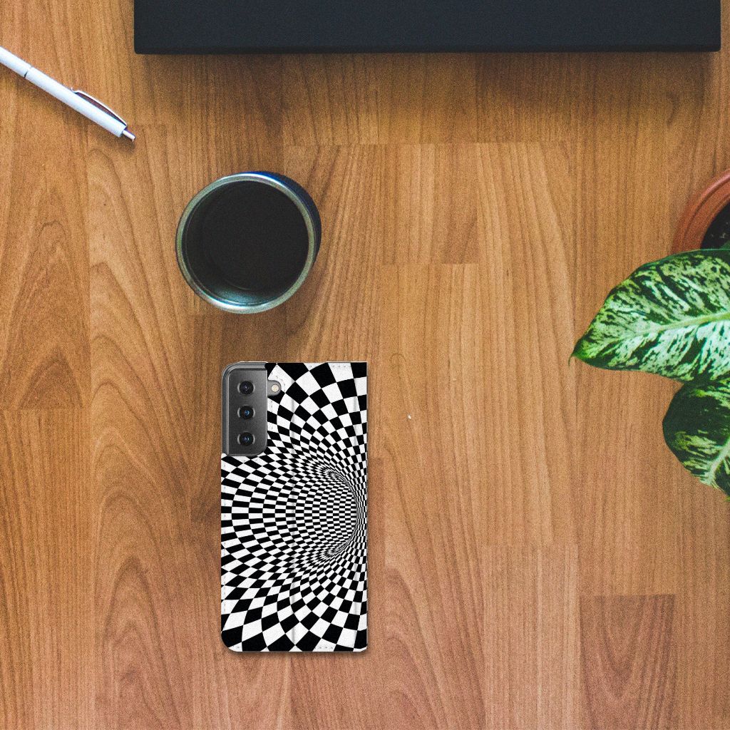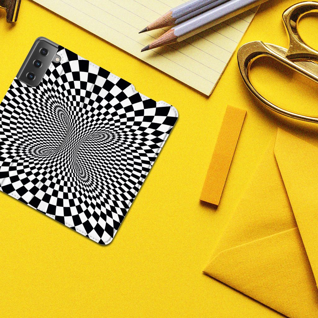 Stand Case Samsung Galaxy S21 Design Illusie Zwart & Wit