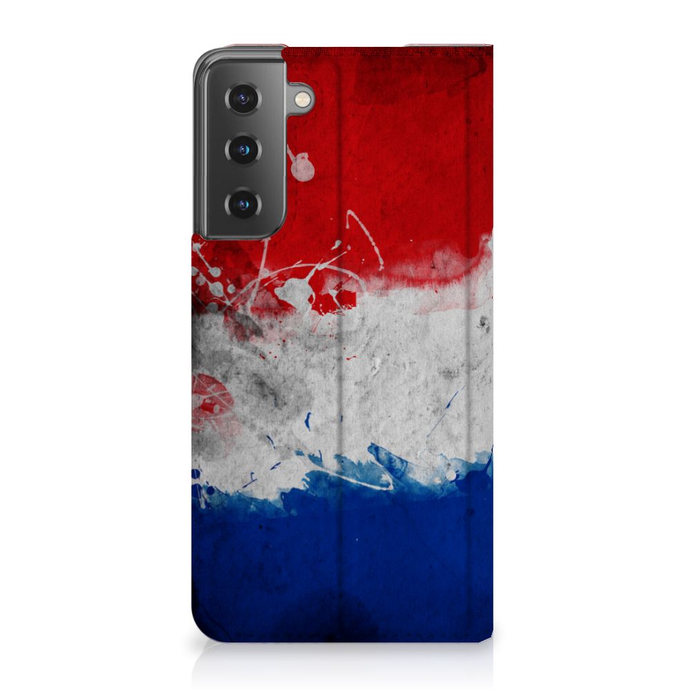 Wil jij de Nederlandse vlag altijd en overal met je meedragen? Dat doe je door dit design hoesje met Nederlandse vlag te kopen. Er zijn diverse dagen waarbij je de vlag uithangt zoals: Koningsdag, Bevrijdingsdag, Dodenherdenking (halfstok) en bij verjaardagen van leden van het Koninklijke huis. Daarnaast natuurlijk ook bij de feestelijkheden voor mensen die slagen voor hun opleiding. Maar als je een Samsung Galaxy S21 Standcase koopt met Nederlandse vlag, heb je het rood, wit en blauw altijd bij de hand. Dat is ook verstandig, want met een stand case met vlag is jouw smartphone altijd goed beschermd. Stel nou dat jouw telefoon op de grond valt, dan komt dit hoesje met opbergvakje en magneet aan de binnenkant zeer goed van pas. De houder van TPU aan de binnenzijde is precies op maat gemaakt en de case heeft een standaard.