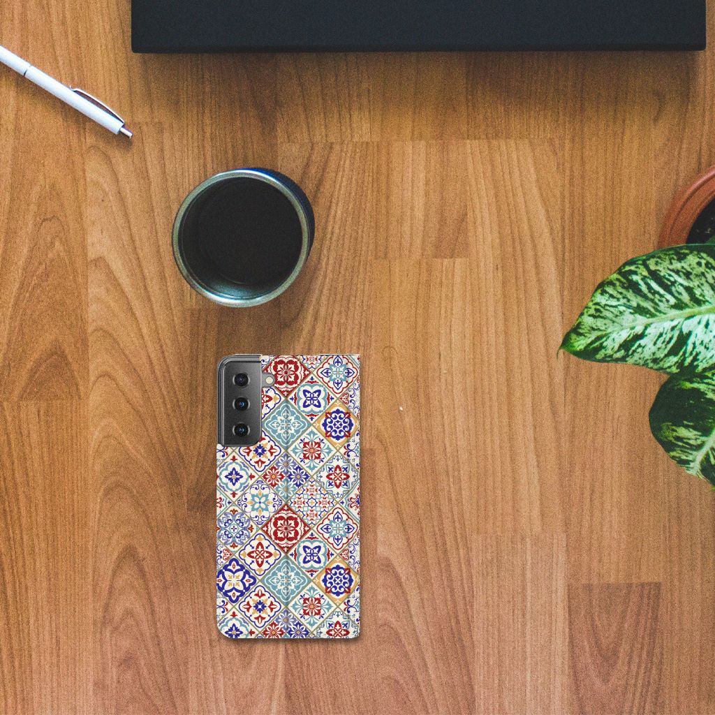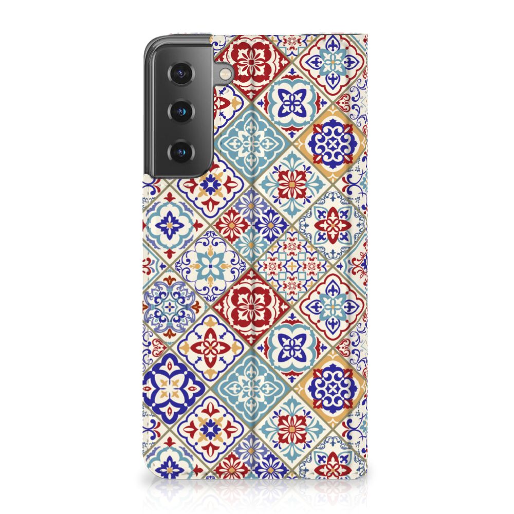 Samsung Galaxy S21 Telefoonhoesje met Pasjes Pauw met Bloemen