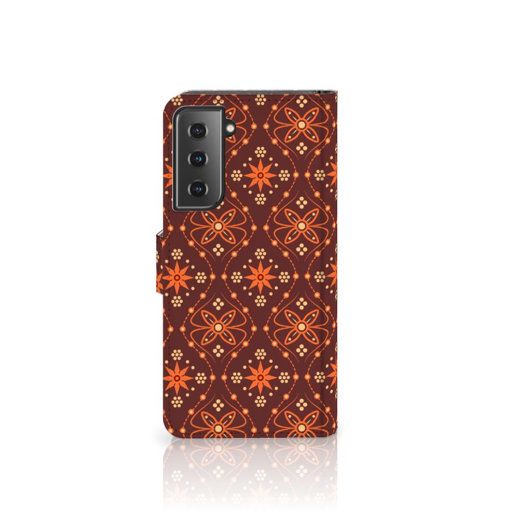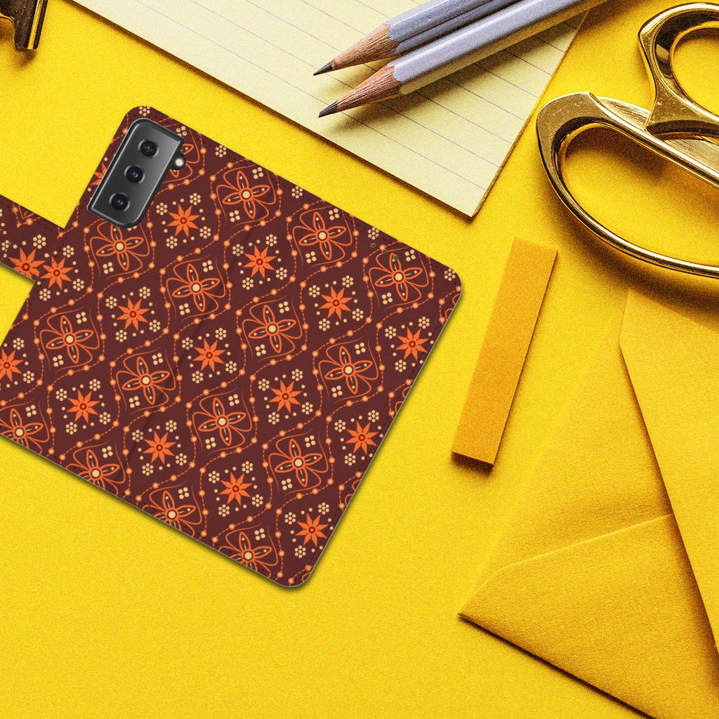 Batikken is een super oude kunstvorm. Met deze methode wordt een geweven stof met verf versierd. Er zijn zulke stoffen gevonden in het Midden-Oosten en Azië van meer dan tweeduizend jaar oud. Wie had kunnen bedenken dat we zo’n mooie batik-print duizenden jaren later zelfs op telefoonhoesjes zouden terugvinden? Dit Telefoon Hoesje in voor je Samsung Galaxy S21 heeft een prachtig symmetrisch patroon. Door de bruine en oranje kleuren doet het design een beetje retro aan en is het toch subtiel te noemen. Dankzij de pasjeshouder in het boekhoesje, heb je altijd je belangrijkste bezittingen bij je. Super handig en ook nog eens erg mooi. En bovenal is je telefoon meteen goed beschermd tegen krassen en beschadigingen. Dit Batik brown-hoesje heeft een lipje aan de buitenkant en een houder gemaakt van TPU.