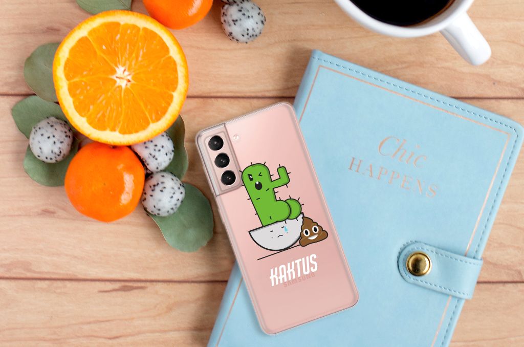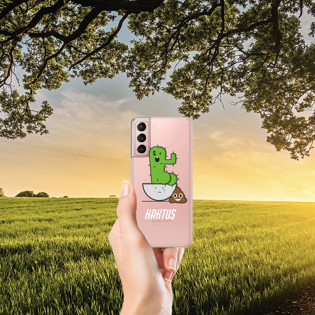 De cactus is leuk, hip en makkelijk te verzorgen. Maar wie denkt dat hij helemaal zonder aandacht kan, heeft het mis. Op dat moment komt hij in opstand, zoals op dit grappige design hoesje met cactus te zien is. Deze Telefoonhoesje met Naam met Cactus Poo design is van alle markten thuis. Het is een zeer veilig maar ook prachtig en praktisch hoesje. Dat bewijzen het flexibele en schokabsoberende materiaal en het lichte gewicht. De meeste cactussen komen uit Amerika. Daar groeien ze in hun natuurlijke omgeving, de woestijn en steppen. Maar ze groeien ook in tropische regenwouden. Dit geeft aan dat de cactus een plant is die zich makkelijk aanpast. Dat geldt dus helaas niet voor de cactus op dit tpu hoesje, maar jouw Samsung Galaxy S21 is wel goed beschermd. Valt de telefoon op de grond, dan beschermen de opstaande randen van de case het touchscreen. Alleen de bovenkant van dit hoesje wordt bedrukt met de geinige kaktus. De zijkanten van de TPU case blijven transparant.