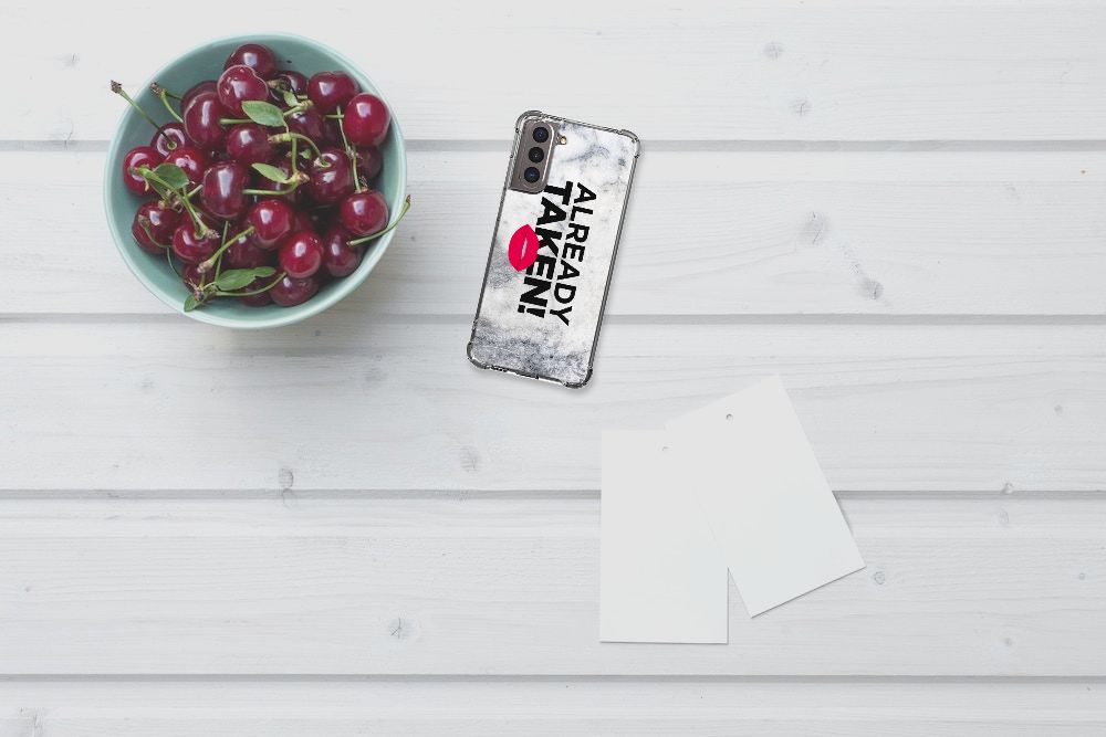 Ben je op zoek naar een uniek telefoonhoesje voor je Samsung Galaxy S21? Dan ben je bij B2C Telecom aan het juiste adres! Speciaal voor jou hebben we dit prachtige Already Taken White design in onze collectie hoesjes opgenomen. Het design wordt bedrukt op een Telefoonhoesje met tekst en is gemaakt van flexibel rubber. Het hoesje is perfect voor de actieve smartphonegebruiker door de opstaande randen/hoeken. Denk aan mensen die veel sporten, reizen of wandelen en net iets meer zekerheid willen als het op hun geliefde telefoon aankomt. Het design wordt alleen aan de bovenkant van het hoesje bedrukt en de randen blijven transparant. Aan de zijkanten zijn uitsparingen gemaakt waardoor je met gemak alle knoppen en poorten kunt bedienen. Wij adviseren om dit hoesje in combinatie met een screenprotector te gebruiken voor een langere levensduur van je telefoon. Wil je dit hoesje nog iets extra's geven? Voeg dan gratis je naam of een quote toe! Is dit design hoesje toch niet helemaal wat je zocht? Ontwerp dan zelf een hoesje in ons ontwerpprogramma.