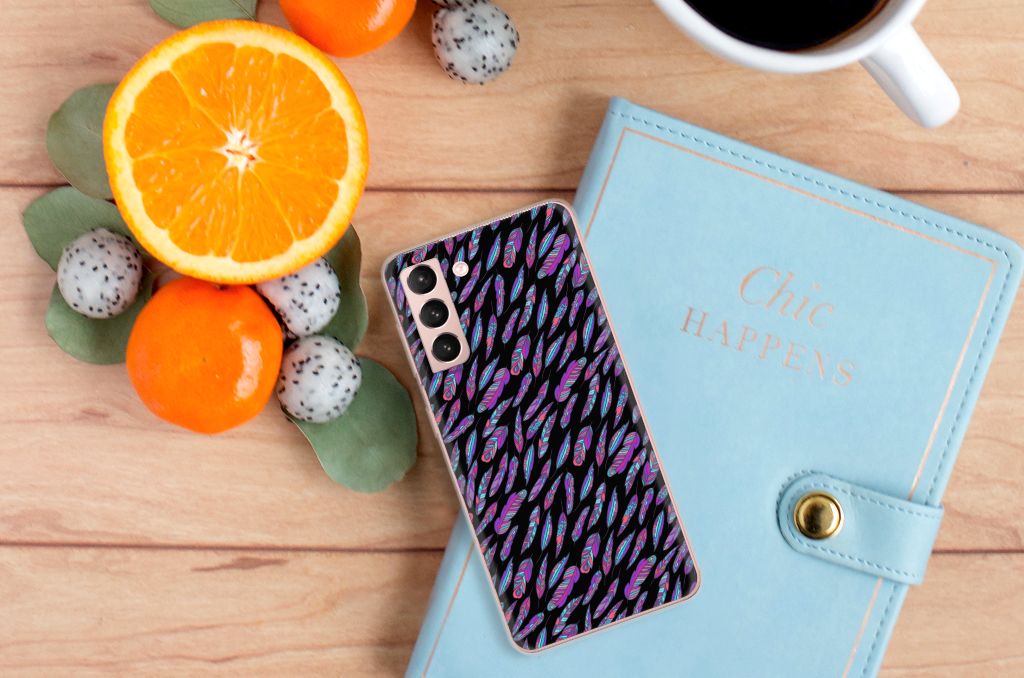 Ben je op zoek naar een uniek telefoonhoesje voor je Samsung Galaxy S21? Dan ben je bij B2C Telecom aan het juiste adres! Speciaal voor jou hebben we dit prachtige Feathers Color design in onze collectie hoesjes opgenomen. Het design wordt bedrukt op een TPU bumper en is gemaakt van flexibel rubber. Het design wordt alleen aan de bovenkant van het hoesje bedrukt en de randen blijven transparant. Aan de zijkanten zijn uitsparingen gemaakt waardoor je met gemak alle knoppen en poorten kunt bedienen. Wij adviseren om dit hoesje in combinatie met een screenprotector te gebruiken voor een langere levensduur van je telefoon. Wil je dit design hoesje nog iets extra's geven? Voeg dan gratis je naam of een quote toe! Is dit design hoesje toch niet helemaal wat je zocht? Ontwerp dan zelf een hoesje in ons ontwerpprogramma.