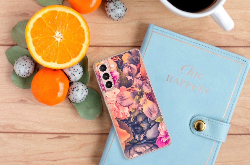 Dit Bosje Bloemen doet een mens en zijn smartphone goed. De oranje, paarse en roze bloemen op deze Samsung Galaxy S21 TPU Case geven jouw smartphone een zeer sierlijke uitstraling. Je wordt er ook meteen vrolijker van als je aan het appen, mailen of aan het bellen bent. Valt dan je telefoon op de grond, dan zal er dankzij de tpu case met oranje, paarse en roze bloemen geen schade ontstaan. Helemaal niet als je er een screenprotector bij hebt gekocht. Onze tpu cases met oranje, paarse en roze bloemen zien er zeer prettig uit en zijn heel praktisch, getuige onder meer de opstaande randen en het flexibele materiaal. Alleen de achterkant van de tpu case wordt bedrukt met oranje, paarse en roze bloemen. Op deze tpu case is het ook mogelijk je eigen ontwerp te zetten. In no time ontwerp je zelf een tpu case met daarop foto’s van jouw favoriete bloemen.