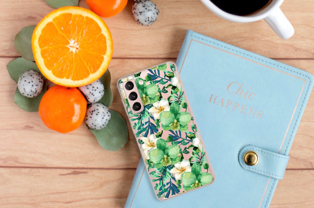 Ben je op zoek naar een uniek telefoonhoesje voor je Samsung Galaxy S21? Dan ben je bij B2C Telecom aan het juiste adres! Speciaal voor jou hebben we dit prachtige Orchidee Groen design in onze collectie hoesjes opgenomen. Het design wordt bedrukt op een TPU Case en is gemaakt van flexibel rubber. Het design wordt alleen aan de bovenkant van het hoesje bedrukt en de randen blijven transparant. Aan de zijkanten zijn uitsparingen gemaakt waardoor je met gemak alle knoppen en poorten kunt bedienen. Wij adviseren om dit hoesje in combinatie met een screenprotector te gebruiken voor een langere levensduur van je telefoon. Wil je dit design hoesje nog iets extra's geven? Voeg dan gratis je naam of een quote toe! Is dit design hoesje toch niet helemaal wat je zocht? Ontwerp dan zelf een hoesje in ons ontwerpprogramma.