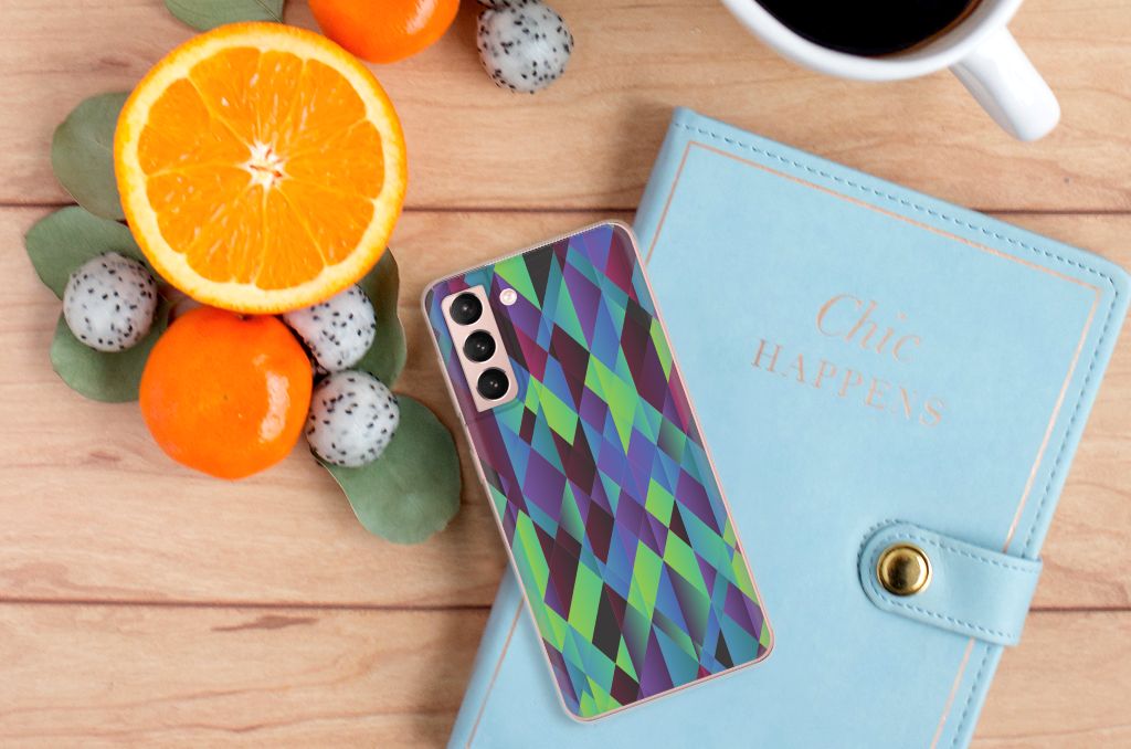 Dit kleurrijke design hoesje is een zeer opvallende bescherming voor jouw smartphone. Mensen zien je van ver aankomen wandelen als je dit hoesje om je telefoon hebt zitten. De case beschikt over ongelooflijk veel kleuren: groen, blauw, paars, blauw, bruin en ga zo maar door. Ze hebben gemeenschappelijk dat ze allemaal zeer fel zijn en op een zeer kunstzinnige manier door elkaar zijn gebruikt. Jouw Samsung Galaxy S21 krijgt zeker kleur als je dit hoesje koopt. Het ziet er zeer hip en trendy uit. Zeker een case waar met bewondering naar gekeken zal worden. Het design Abstract Green Blue staat op een TPU case. Dit TPU Hoesje wordt alleen aan de bovenkant bedrukt en is zeer flexibel. De randen van het hoesje blijven transparant.