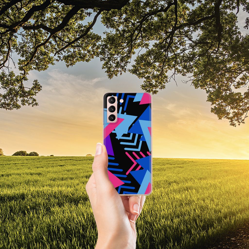 Dit fraaie hoesje met het design Funky Triangle is alles behalve eenvoudig en sober. Dat komt goed uit, want je hebt natuurlijk ook geen doorsnee telefoon gekocht. Mocht je dat wel hebben gedaan, dan wordt hij meteen speciaal als je een Samsung Galaxy S21 TPU Hoesje koopt voor een spotprijsje. Een ding is zeker: opvallen ga je beslist met dit hoesje met paarse, roze en blauwe driehoeken. Jij zult in je element zijn met dit design hoesje met paarse, roze en blauwe driehoeken, omdat het er schitterend uitziet en jouw telefoon zeer goed beschermt. Het smartphonehoesje beschermt jouw telefoon vooral aan de zijkanten en achterkant en wordt alleen aan de bovenzijde bedrukt met paarse, roze en blauwe driehoeken. De zijkanten blijven doorzichtig. De paarse, roze en blauwe driehoeken maken de case helemaal af.