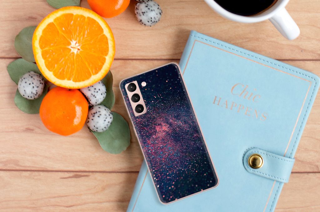 Je waant je in de zevende hemel met dit kunstzinnige, glitterachtige design hoesje met paarse en blauwe kleuren tegen een inktzwarte achtergrond. Het smartphone hoesje heeft ook een wat science fiction achtige allure. Met deze design Stars case zul je zeker opvallen. Als dit je bedoeling is, bestel dat snel dit waanzinnig mooie product voor je Samsung Galaxy S21. Het telefoonhoesje is van alle gemakken voorzien en combineert een hele fraaie uitstraling met maximaal comfort. Bovendien is het gemaakt van zeer stevig en flexibel materiaal. Het unieke design, door B2C Telecom ontworpen, staat op een TPU Hoesje. Dit hoesje wordt alleen aan de bovenkant bedrukt en is zeer flexibel. De randen van het hoesje blijven transparant en worden niet bedrukt. Met dit hoesje past jouw telefoon altijd in je broekzak.