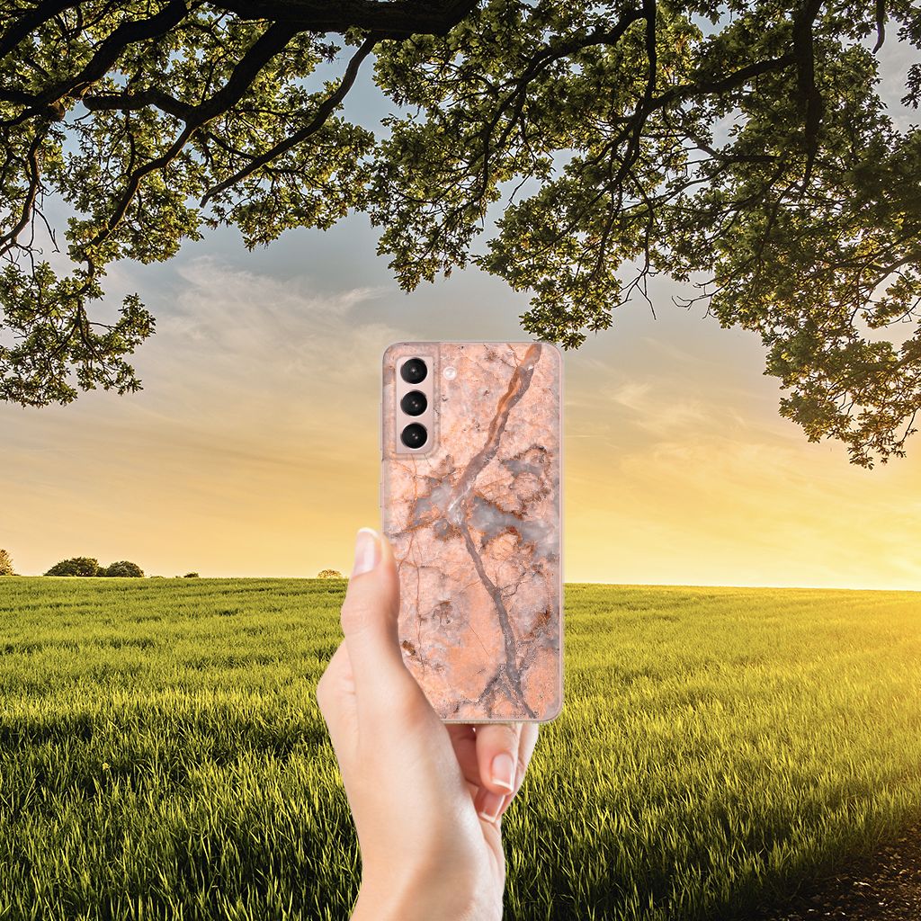 Dit design hoesje met Marmer Oranje is zeer geschikt voor jouw kostbare telefoon. Vanwege zijn prachtige lichtval en vastheid is marmer een zeer gewild bouwmateriaal. Wij kunnen inmiddels concluderen dat dit hoesje met oranje marmer ook zeer gewild is. Beloon jezelf en je telefoon met dit hele mooie Samsung Galaxy S21 TPU Siliconen Hoesje. Naast het oranje marmer zijn er de diverse marmersoorten in een ruim kleurenpallet te krijgen. Deze tpu case met marmer in oranje wordt aan de achterzijde bedrukt. De case beschikt over opstaande randen en is gemaakt van onbreekbaar materiaal. De randen van de case in oranje marmer blijven transparant. Wij hebben onze designer veel vrijheid gegeven met het ontwerpen dit mooie hoesje. Het resultaat zie je terug in deze tpu case met oranje marmer, dat een hele goede bescherming is voor jouw smartphone. Des te mooi dat wij voor variatie hebben gekozen door een hoesje met oranje marmer aan de bieden.