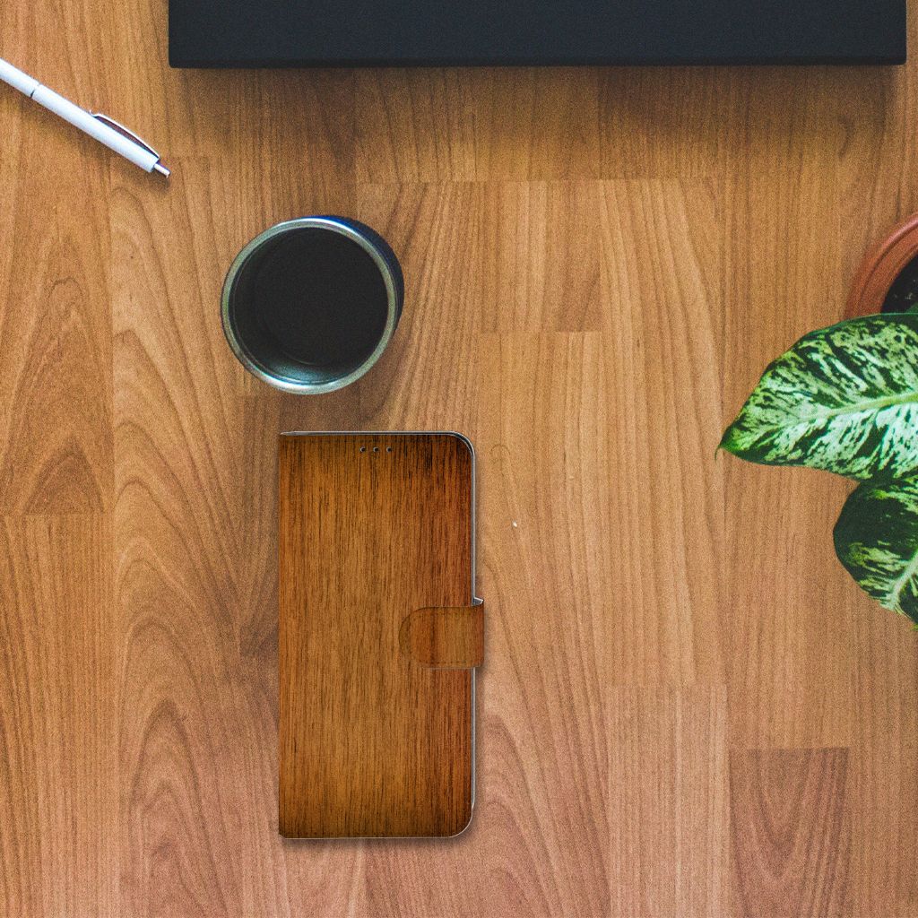 Samsung Galaxy S21 Ultra Book Style Case met pasjeshouder Donker Hout