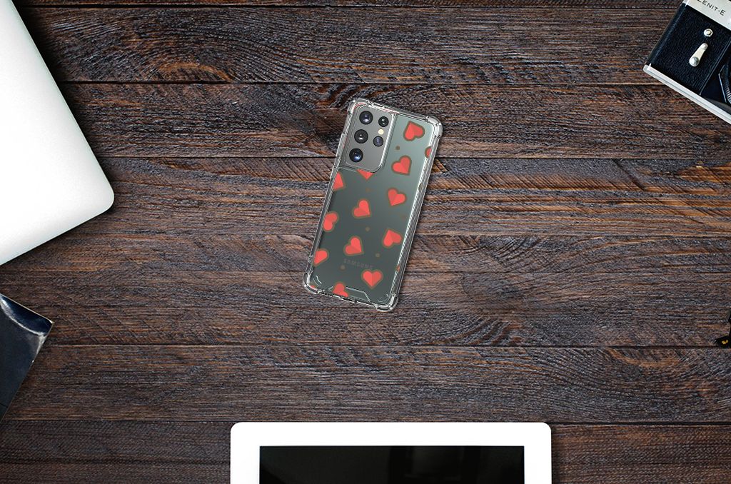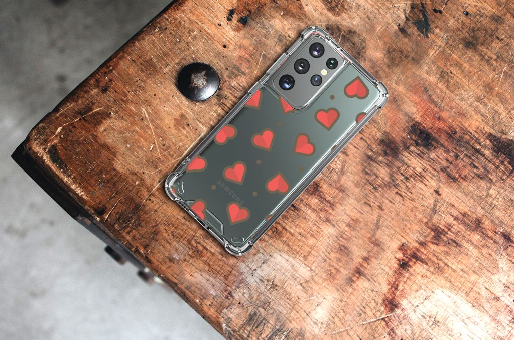 Ben je op zoek naar een uniek telefoonhoesje voor je Samsung Galaxy S21 Ultra? Dan ben je bij B2C Telecom aan het juiste adres! Speciaal voor jou hebben we dit prachtige Hearts design in onze collectie hoesjes opgenomen. Het design wordt bedrukt op een Doorzichtige Silicone Hoesje en is gemaakt van flexibel rubber. Het hoesje is perfect voor de actieve smartphonegebruiker door de opstaande randen/hoeken. Denk aan mensen die veel sporten, reizen of wandelen en net iets meer zekerheid willen als het op hun geliefde telefoon aankomt. Het design wordt alleen aan de bovenkant van het hoesje bedrukt en de randen blijven transparant. Aan de zijkanten zijn uitsparingen gemaakt waardoor je met gemak alle knoppen en poorten kunt bedienen. Wij adviseren om dit hoesje in combinatie met een screenprotector te gebruiken voor een langere levensduur van je telefoon. Wil je dit hoesje nog iets extra's geven? Voeg dan gratis je naam of een quote toe! Is dit design hoesje toch niet helemaal wat je zocht? Ontwerp dan zelf een hoesje in ons ontwerpprogramma.