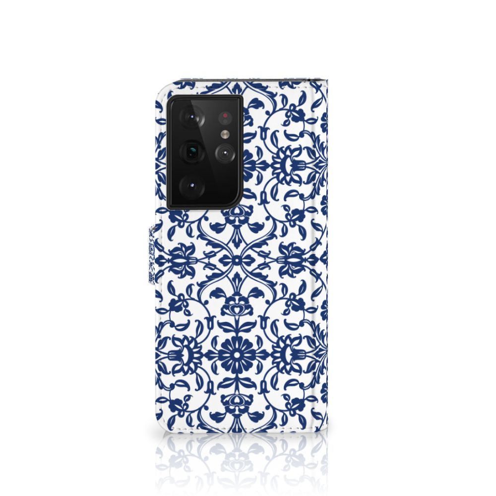 Samsung Galaxy S21 Ultra Hoesje met ruimte voor drie pasjes Flower Blue