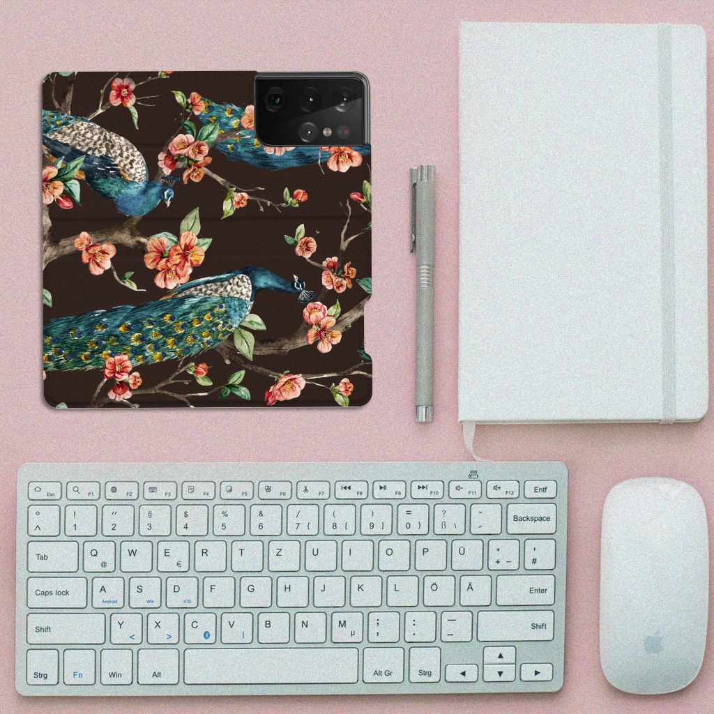 Samsung Galaxy S21 Ultra Hoesje maken Pauw met Bloemen