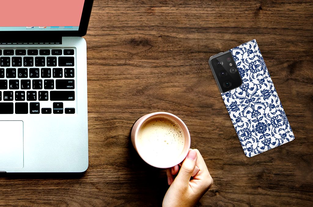 Een plaatje, deze Samsung Galaxy S21 Ultra Smart Cover met Flower Blue patroon, die jouw telefoon van een hele mooie uitstraling voorziet. We hebben verschillende soorten patronen in de aanbieding waarmee we jouw hoesje kunnen verrijken, maar dit is wel een van de fraaiste. Maar natuurlijk heeft iedereen zo zijn eigen smaak. Vandaar dat we nog allerlei andere patronen kunnen aanbieden in de leukste kleurencombinaties. Het stand hoesje met blauwwit patroon beschermt jouw telefoon aan alle zijden en beschikt over een opbergvakjes voor pasjes en briefgeld. De case sluit perfect af dankzij de magneet aan de binnenzijde. De houder aan de binnenzijde van TPU is zeer flexibel. Alle zijden van de stand case worden bedrukt met het blauwwitte patroon. Heb je een rijke fantasie? Ontwerp dan je eigen design hoesje met favoriet patroon.