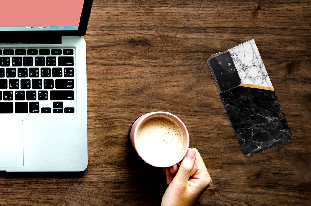 Dit design hoesje met zwartwit marmer is zeer geschikt voor jouw kostbare telefoon. Vanwege zijn prachtige lichtval en vastheid is marmer zeer gewild als bouwmateriaal. Op jouw smartphone kun je lange tijd bouwen als jij kiest voor deze hele mooie Samsung Galaxy S21 Ultra Standcase. Naast het zwart-witte marmer zijn er de diverse marmersoorten in een ruim kleurenpallet te krijgen. Deze stand case met marmer in zwart-wit wordt bedrukt op alle zijden. De case beschikt over een vakje voor een pasje en toebehoren en een magnetische sluiting aan de binnenzijde. Verder heeft de case in zwart wit marmer een houder van TPU. Wij hebben onze designer veel vrijheid gegeven met het ontwerpen dit mooie hoesje. Het resultaat zie je terug in deze stand case met zwartwit marmer, dat de ideale bescherming is voor jouw smartphone.