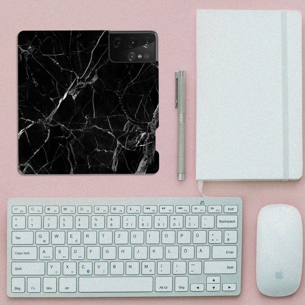 Dit design hoesje met Marmer Zwart is voor de artistieke personen onder ons. De Grieken en Romeinen wisten het materiaal al te waarderen door het in de bouw toe te passen. Naast het witte marmer met haar zacht grijze geaderde belijning zijn de diverse soorten in een gevarieerd kleurenpallet te krijgen. We hebben mooie kleuren op design hoesjes gezet, zoals in dit geval zwart marmer. Dit is een Samsung Galaxy S21 Ultra Standcase met marmer in zwarte kleur. Het marmer wordt bedrukt op alle zijden van een stand case, die beschikt over 1 vakje voor een pasje en een magnetische sluiting aan de binnenzijde. Verder heeft de hoes een houder van TPU. De rijkdom aan kleuren en varianties in afwerking geeft ontwerpers de vrijheid om met marmer hele mooie architectonische projecten te realiseren. Wij hebben onze ontwerper tevens veel vrijheid gegeven. Het resultaat zie je terug in deze stand case met zwart marmer, dat de ideale bescherming voor jouw smartphone biedt.