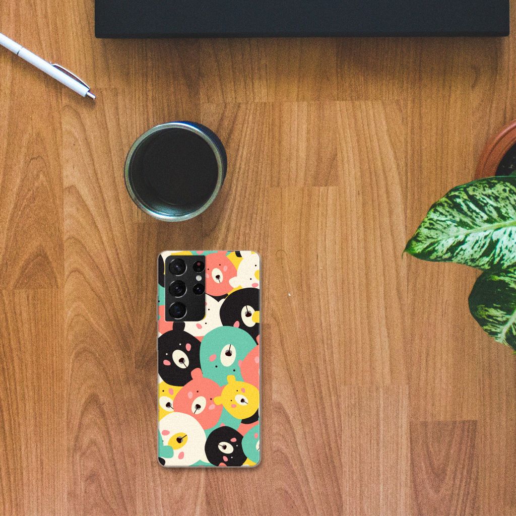 Op dit hoesje vind je een bereschattig ontwerp! Vergeef ons de woordgrap, maar hoe moeten we dit lieve ontwerp anders omschrijven? Op dit knuffelige ontwerp zie je leuke, getekende beertjes in vrolijke kleuren als geel, blauw en roze. Dankzij de contrasterende witte en zwarte beertjes vallen de felle kleurtjes nog meer op. Al met al is dit Telefoonhoesje met Naam voor de Samsung Galaxy S21 Ultra een perfect hoesje voor de knuffelberen onder ons. TPU is flexibel en onbreekbaar. Zo is je telefoon aan de achterkant en de randen heel goed beschermd. De case met het Bears-design is aan de bovenkant bedrukt, de randen blijven transparant. Het TPU-hoesje is perfect te combineren met een screenprotector, zo zijn je telefoon en je beeldscherm perfect beschermd.