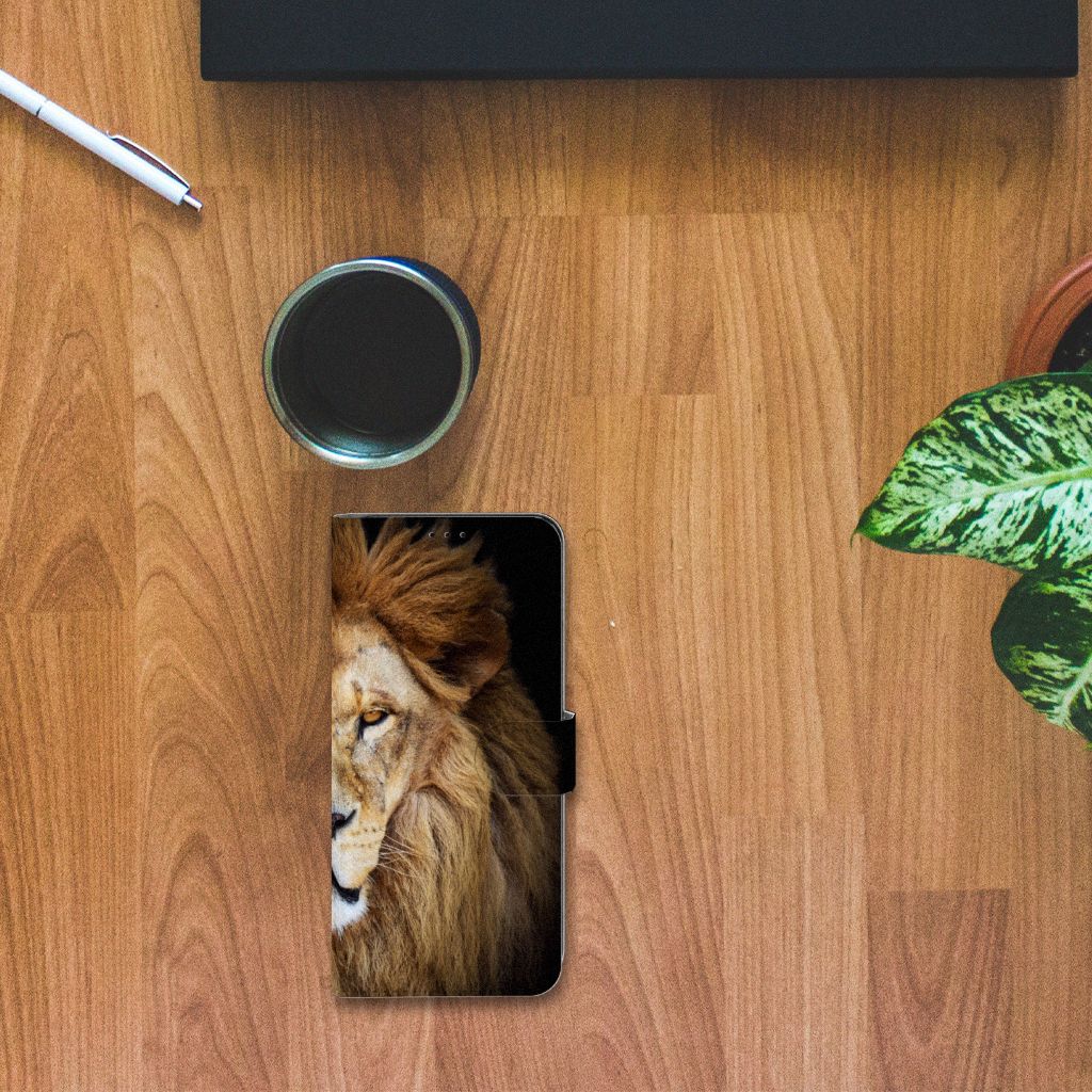 Samsung Galaxy S21 Ultra Telefoonhoesje met Pasjes en met magnetische sluitclip Leeuw