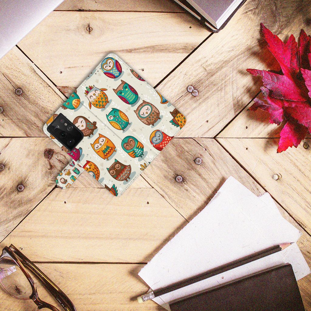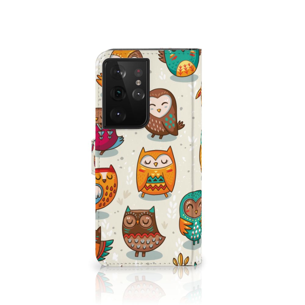 Samsung Galaxy S21 Ultra Telefoonhoesje met ruimte voor drie pasjes Vrolijke Uilen
