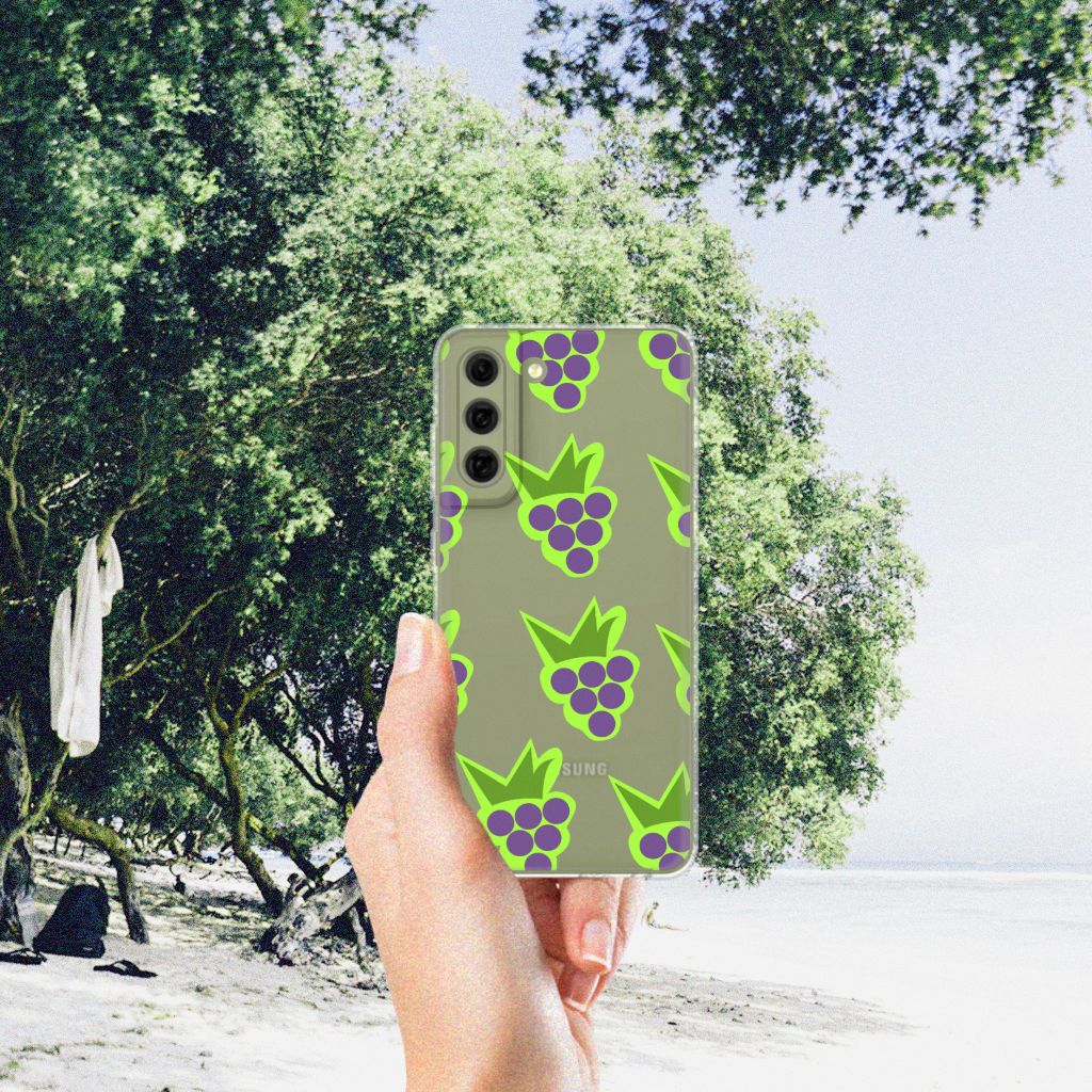Druiven worden ook wel de ‘koningin van het fruit’ genoemd. Dus komen ze uiteraard aan bod in ons assortiment design hoesjes. Een Samsung Galaxy S21FE Siliconen Case met een tros blauwe druiven maakt je ontzettend trots. Juist omdat het zo goed past bij jouw smartphone. Doordat er veel verschillende soorten druiven bestaan - groene, rode en zelfs zwarte - is het aanbod ontzettend groot. Ons aanbod tpu cases met blauwe druiven is ook zeer groot, je zult niet snel achter het net vissen. Het tpu hoesje met druiven design heeft opstaande randen, waardoor het scherm de grond niet raakt als jouw telefoon uit je handen valt. Dit leuke tpu hoesje met tros blauwe druiven is zeer flexibel en heeft opstaande randen. Ben je op zoek naar hoesjes met ander fruit erop? Je komt aan je trekken als je ons assortiment design hoesjes bekijkt. Het tpu is zeer flexibel. De randen van dit hoesje blijven transparant en worden niet bedrukt met blauwe druiven.