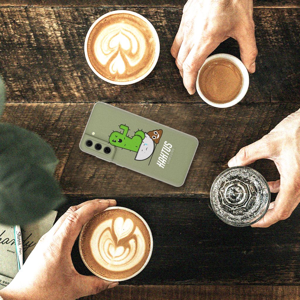 De cactus is leuk, hip en makkelijk te verzorgen. Maar wie denkt dat hij helemaal zonder aandacht kan, heeft het mis. Op dat moment komt hij in opstand, zoals op dit grappige design hoesje met cactus te zien is. Deze Telefoonhoesje met Naam met Cactus Poo design is van alle markten thuis. Het is een zeer veilig maar ook prachtig en praktisch hoesje. Dat bewijzen het flexibele en schokabsoberende materiaal en het lichte gewicht. De meeste cactussen komen uit Amerika. Daar groeien ze in hun natuurlijke omgeving, de woestijn en steppen. Maar ze groeien ook in tropische regenwouden. Dit geeft aan dat de cactus een plant is die zich makkelijk aanpast. Dat geldt dus helaas niet voor de cactus op dit tpu hoesje, maar jouw Samsung Galaxy S21FE is wel goed beschermd. Valt de telefoon op de grond, dan beschermen de opstaande randen van de case het touchscreen. Alleen de bovenkant van dit hoesje wordt bedrukt met de geinige kaktus. De zijkanten van de TPU case blijven transparant.