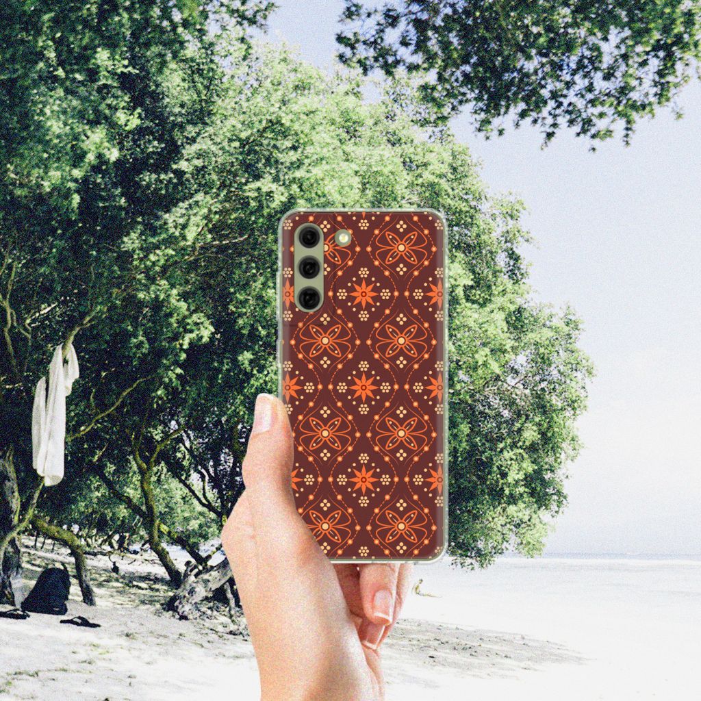 Batikken is een super oude kunstvorm. Met deze methode wordt een geweven stof met verf gedecoreerd. Er zijn stoffen gevonden in het Midden-Oosten en Azië van meer dan tweeduizend jaar oud. Wie had kunnen bedenken dat we zo’n mooie batik-print duizenden jaren later zelfs op telefoonhoesjes zouden terugvinden? Dit TPU bumper in voor je Samsung Galaxy S21FE heeft een prachtig symmetrisch patroon. Door de bruine en oranje kleuren doet het design een beetje retro aan en is het toch subtiel te noemen. Naast het feit dat dit hoesje gewoon erg mooi is, is je telefoon er natuurlijk ook goed mee beschermd. TPU is een zeer sterk maar toch licht en flexibel materiaal en is daarom ideaal voor om je smartphone.