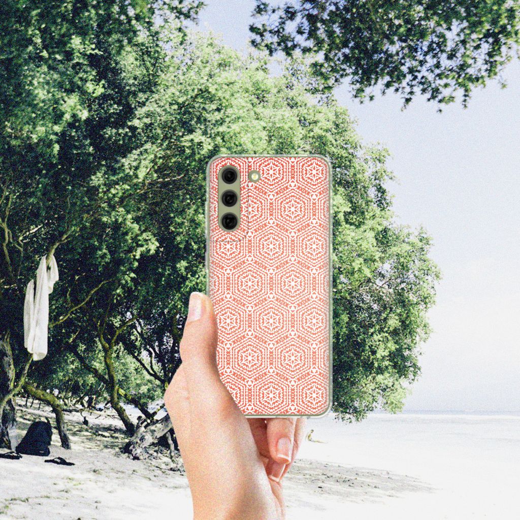 Deze Samsung Galaxy S21FE TPU bumper met Pattern Orange vind je in geen enkel andere winkel of webshop. Heb je het eenmaal in je bezit, dan wil waarschijnlijk nooit meer een ander smartphone hoesje meer. Het design met oranje en wit patroon is bijzonder smaakvol en op maat gemaakt voor jouw smartphone. Dat is de kracht van het hoesje. Met dit design hoesje met oranje en wit patroon zal je ook heel erg opvallen. Dit is voor veel smartphone gebruikers een belangrijk voordeel. Dit zeer flexibele smartphone hoesje heeft alle nodige uitsparingen en past altijd in je broekzak. De tpu case is aan de bovenkant bedrukt, de randen blijven transparant. Het oranje patroon staat op deze TPU case erg goed. Het TPU is onbreekbaar.