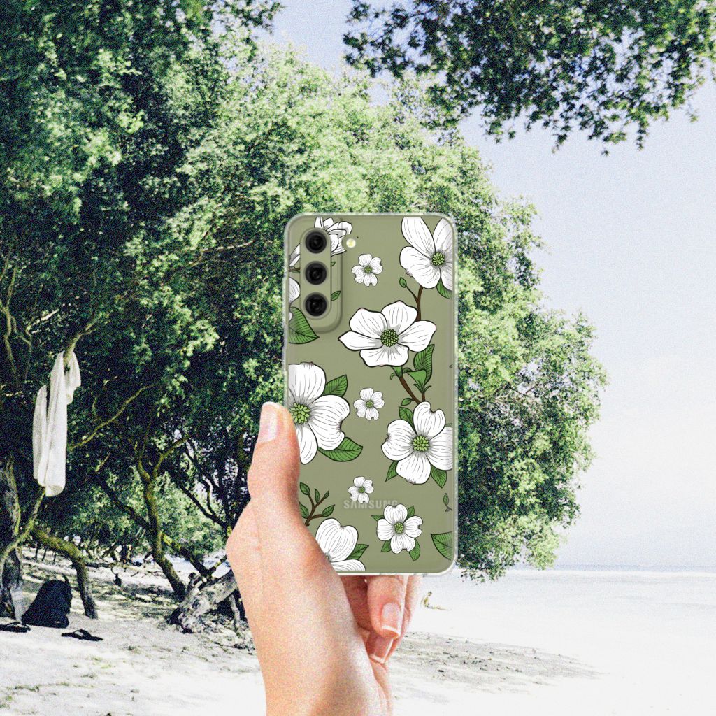 Ben je op zoek naar een uniek telefoonhoesje voor je Samsung Galaxy S21FE? Dan ben je bij B2C Telecom aan het juiste adres! Speciaal voor jou hebben we dit prachtige Dogwood Flowers design in onze collectie hoesjes opgenomen. Het design wordt bedrukt op een TPU Case en is gemaakt van flexibel rubber. Het design wordt alleen aan de bovenkant van het hoesje bedrukt en de randen blijven transparant. Aan de zijkanten zijn uitsparingen gemaakt waardoor je met gemak alle knoppen en poorten kunt bedienen. Wij adviseren om dit hoesje in combinatie met een screenprotector te gebruiken voor een langere levensduur van je telefoon. Wil je dit design hoesje nog iets extra's geven? Voeg dan gratis je naam of een quote toe! Is dit design hoesje toch niet helemaal wat je zocht? Ontwerp dan zelf een hoesje in ons ontwerpprogramma.