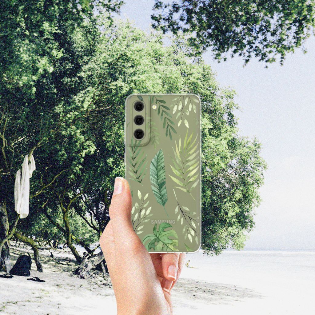 Je voelt je verbonden met de natuur als je kiest voor deze Samsung Galaxy S21FE TPU Case met print Leaves. De print bestaat uit verschillende groene bladeren en dit zorgt voor een fraai decoratief geheel. Met dit patroon van groene bladeren creëer je een frisse uitstraling voor jouw smartphone. Jij doet er verstandig aan om je telefoon te beschermen met dit design hoesje met groene bladeren, die staan op een tpu case. Dit tpu hoesje kenmerkt zich onder meer door de opstaande randen aan de voorzijde, waardoor bij een val van de smartphone het scherm de grond niet raakt. Voel jij jezelf gezond met een beeld van groene bladeren, dan is deze tpu case met print een uitstekende optie. Het beschermt jouw telefoon aan de achterkant en zijkanten zeer goed. Het TPU is zeer flexibel en onbreekbaar. De zijkanten van de case blijven transparant. Kijk ook eens naar onze andere hoesjes met bladeren of misschien maak je zelf wel gewoon liefst je eigen hoesje met eigen foto’s van bladeren.