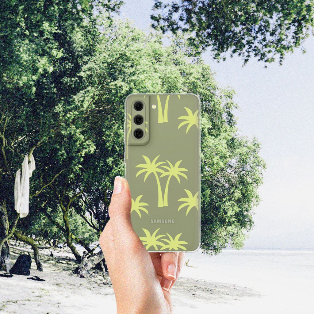 Je krijgt direct een vakantiegevoel als je kiest voor een Samsung Galaxy S21FE TPU Case met opdruk van lichtgroene Palmtrees. Sommige mensen hebben ook een palmboom in hun tuin staan, wij kunnen er meerdere op een tpu case zetten. Jouw smartphone is op en top beschermd met een tpu case met lichtgroene palmbomen tegen een witgrijze achtergrond en ziet er schitterend uit. Het is heel verstandig je telefoon te beschermen met een tpu hoesje met palmbomen tegen een witgrijze achtergrond. De TPU case met print van lichtgroene palmbomen beschermt jouw telefoon voornamelijk aan de achterzijde. De randen van de case worden niet bedrukt met lichtgroene palmbomen. TPU is zeer flexibel.