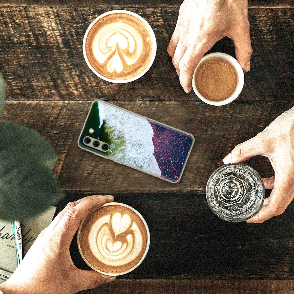 Ben je een beetje een artistiek type? Dan kan je wel eens enthousiast raken van dit smartphonehoesje. ‘Sea in Space’, zo noemt onze grafisch designer dit ontwerp. Dus mensen die van zon en zee kunnen genieten en tegelijkertijd van science fiction houden zullen deze case ongetwijfeld mooi vinden. Een beetje glitter en glamour zou je met een beetje fantasie ook nog wel kunnen ontdekken in dit design hoesje. Dit artistieke kunstwerkje is voor heel weinig geld te bestellen op onze website. Je krijgt er maximale bescherming van je Samsung Galaxy S21FE voor terug. Het design staat op een TPU Hoesje. Dit hoesje wordt alleen aan de bovenkant bedrukt en is zeer flexibel. De randen van het hoesje blijven transparant en worden niet bedrukt.