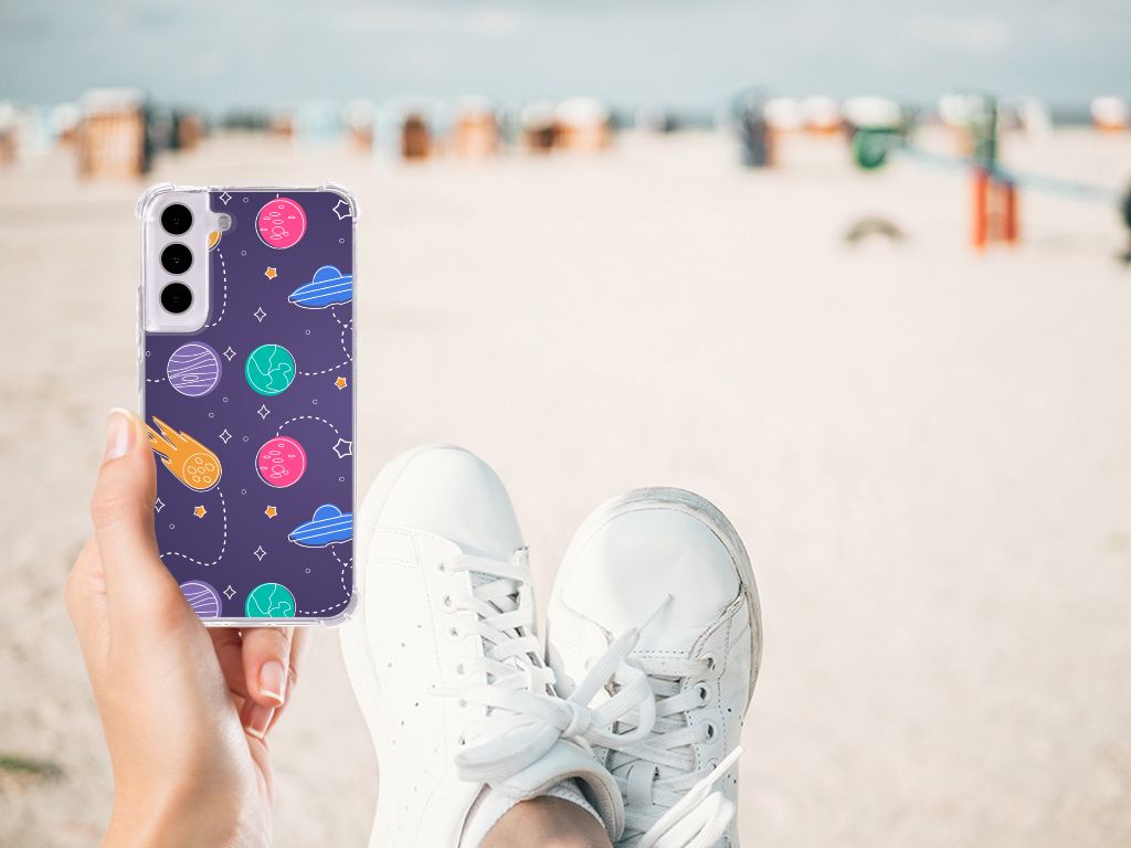 Ben je op zoek naar een uniek telefoonhoesje voor je Samsung Galaxy S22? Dan ben je bij B2C Telecom aan het juiste adres! Speciaal voor jou hebben we dit prachtige Space design in onze collectie hoesjes opgenomen. Het design wordt bedrukt op een Anti Shock Bumper Case en is gemaakt van flexibel rubber. Het hoesje is perfect voor de actieve smartphonegebruiker door de opstaande randen/hoeken. Denk aan mensen die veel sporten, reizen of wandelen en net iets meer zekerheid willen als het op hun geliefde telefoon aankomt. Het design wordt alleen aan de bovenkant van het hoesje bedrukt en de randen blijven transparant. Aan de zijkanten zijn uitsparingen gemaakt waardoor je met gemak alle knoppen en poorten kunt bedienen. Wij adviseren om dit hoesje in combinatie met een screenprotector te gebruiken voor een langere levensduur van je telefoon. Wil je dit hoesje nog iets extra's geven? Voeg dan gratis je naam of een quote toe! Is dit design hoesje toch niet helemaal wat je zocht? Ontwerp dan zelf een hoesje in ons ontwerpprogramma.