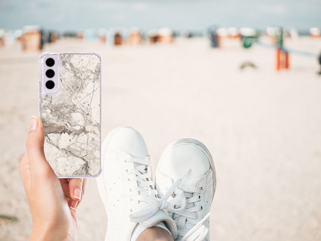 Ben je op zoek naar een uniek telefoonhoesje voor je Samsung Galaxy S22? Dan ben je bij B2C Telecom aan het juiste adres! Speciaal voor jou hebben we dit prachtige Marmer Beige design in onze collectie hoesjes opgenomen. Het design wordt bedrukt op een Anti-Shock Hoesje en is gemaakt van flexibel rubber. Het hoesje is perfect voor de actieve smartphonegebruiker door de opstaande randen/hoeken. Denk aan mensen die veel sporten, reizen of wandelen en net iets meer zekerheid willen als het op hun geliefde telefoon aankomt. Het design wordt alleen aan de bovenkant van het hoesje bedrukt en de randen blijven transparant. Aan de zijkanten zijn uitsparingen gemaakt waardoor je met gemak alle knoppen en poorten kunt bedienen. Wij adviseren om dit hoesje in combinatie met een screenprotector te gebruiken voor een langere levensduur van je telefoon. Wil je dit hoesje nog iets extra's geven? Voeg dan gratis je naam of een quote toe! Is dit design hoesje toch niet helemaal wat je zocht? Ontwerp dan zelf een hoesje in ons ontwerpprogramma.