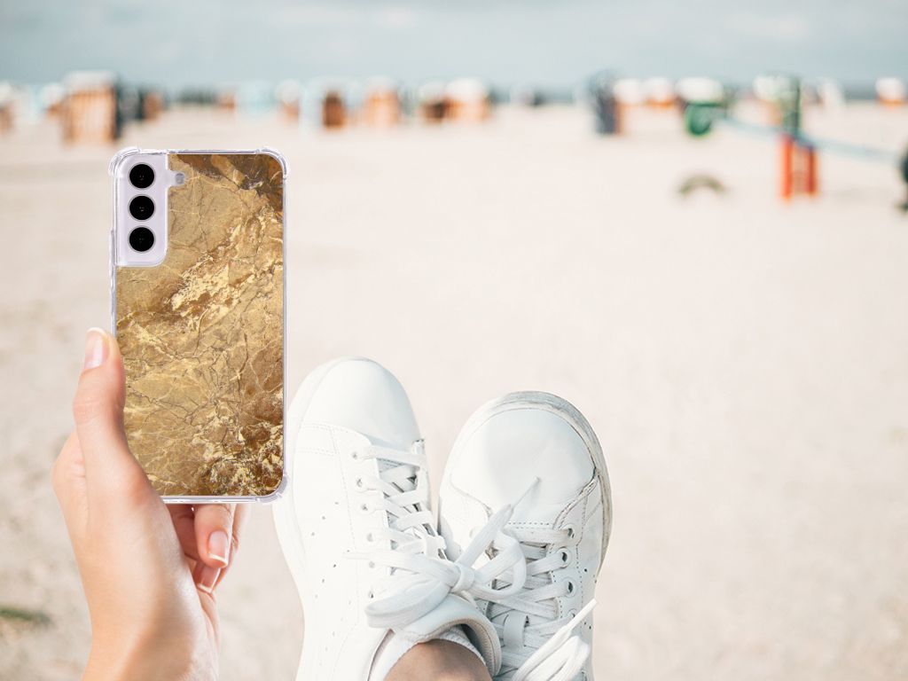 Ben je op zoek naar een uniek telefoonhoesje voor je Samsung Galaxy S22? Dan ben je bij B2C Telecom aan het juiste adres! Speciaal voor jou hebben we dit prachtige Marmer design in onze collectie hoesjes opgenomen. Het design wordt bedrukt op een Anti-Shock Hoesje en is gemaakt van flexibel rubber. Het hoesje is perfect voor de actieve smartphonegebruiker door de opstaande randen/hoeken. Denk aan mensen die veel sporten, reizen of wandelen en net iets meer zekerheid willen als het op hun geliefde telefoon aankomt. Het design wordt alleen aan de bovenkant van het hoesje bedrukt en de randen blijven transparant. Aan de zijkanten zijn uitsparingen gemaakt waardoor je met gemak alle knoppen en poorten kunt bedienen. Wij adviseren om dit hoesje in combinatie met een screenprotector te gebruiken voor een langere levensduur van je telefoon. Wil je dit hoesje nog iets extra's geven? Voeg dan gratis je naam of een quote toe! Is dit design hoesje toch niet helemaal wat je zocht? Ontwerp dan zelf een hoesje in ons ontwerpprogramma.