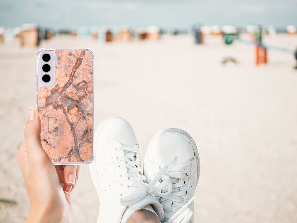 Ben je op zoek naar een uniek telefoonhoesje voor je Samsung Galaxy S22? Dan ben je bij B2C Telecom aan het juiste adres! Speciaal voor jou hebben we dit prachtige Marmer Oranje design in onze collectie hoesjes opgenomen. Het design wordt bedrukt op een Anti-Shock Hoesje en is gemaakt van flexibel rubber. Het hoesje is perfect voor de actieve smartphonegebruiker door de opstaande randen/hoeken. Denk aan mensen die veel sporten, reizen of wandelen en net iets meer zekerheid willen als het op hun geliefde telefoon aankomt. Het design wordt alleen aan de bovenkant van het hoesje bedrukt en de randen blijven transparant. Aan de zijkanten zijn uitsparingen gemaakt waardoor je met gemak alle knoppen en poorten kunt bedienen. Wij adviseren om dit hoesje in combinatie met een screenprotector te gebruiken voor een langere levensduur van je telefoon. Wil je dit hoesje nog iets extra's geven? Voeg dan gratis je naam of een quote toe! Is dit design hoesje toch niet helemaal wat je zocht? Ontwerp dan zelf een hoesje in ons ontwerpprogramma.