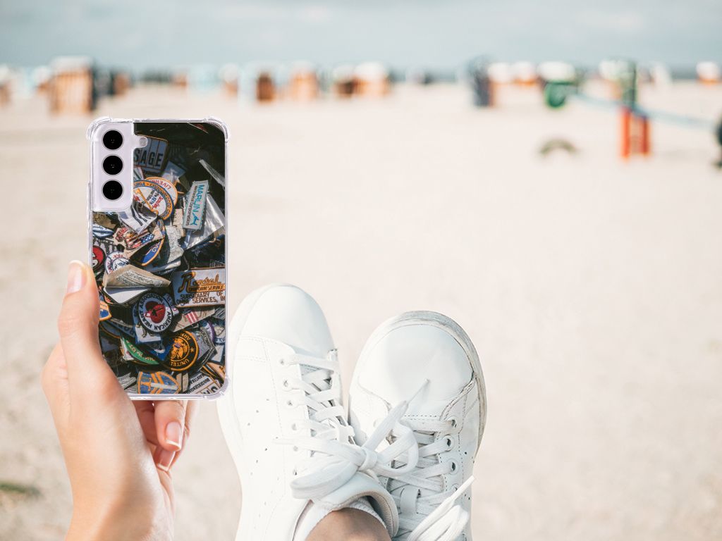 Ben je op zoek naar een uniek telefoonhoesje voor je Samsung Galaxy S22? Dan ben je bij B2C Telecom aan het juiste adres! Speciaal voor jou hebben we dit prachtige Badges design in onze collectie hoesjes opgenomen. Het design wordt bedrukt op een Anti-shock Hoesje met foto en is gemaakt van flexibel rubber. Het hoesje is perfect voor de actieve smartphonegebruiker door de opstaande randen/hoeken. Denk aan mensen die veel sporten, reizen of wandelen en net iets meer zekerheid willen als het op hun geliefde telefoon aankomt. Het design wordt alleen aan de bovenkant van het hoesje bedrukt en de randen blijven transparant. Aan de zijkanten zijn uitsparingen gemaakt waardoor je met gemak alle knoppen en poorten kunt bedienen. Wij adviseren om dit hoesje in combinatie met een screenprotector te gebruiken voor een langere levensduur van je telefoon. Wil je dit hoesje nog iets extra's geven? Voeg dan gratis je naam of een quote toe! Is dit design hoesje toch niet helemaal wat je zocht? Ontwerp dan zelf een hoesje in ons ontwerpprogramma.