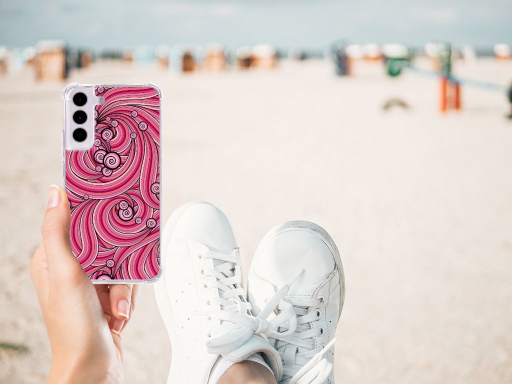 Ben je op zoek naar een uniek telefoonhoesje voor je Samsung Galaxy S22? Dan ben je bij B2C Telecom aan het juiste adres! Speciaal voor jou hebben we dit prachtige Swirl Pink design in onze collectie hoesjes opgenomen. Het design wordt bedrukt op een Back Cover en is gemaakt van flexibel rubber. Het hoesje is perfect voor de actieve smartphonegebruiker door de opstaande randen/hoeken. Denk aan mensen die veel sporten, reizen of wandelen en net iets meer zekerheid willen als het op hun geliefde telefoon aankomt. Het design wordt alleen aan de bovenkant van het hoesje bedrukt en de randen blijven transparant. Aan de zijkanten zijn uitsparingen gemaakt waardoor je met gemak alle knoppen en poorten kunt bedienen. Wij adviseren om dit hoesje in combinatie met een screenprotector te gebruiken voor een langere levensduur van je telefoon. Wil je dit hoesje nog iets extra's geven? Voeg dan gratis je naam of een quote toe! Is dit design hoesje toch niet helemaal wat je zocht? Ontwerp dan zelf een hoesje in ons ontwerpprogramma.