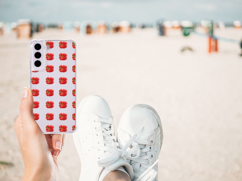 Ben je op zoek naar een uniek telefoonhoesje voor je Samsung Galaxy S22? Dan ben je bij B2C Telecom aan het juiste adres! Speciaal voor jou hebben we dit prachtige Paprika Red design in onze collectie hoesjes opgenomen. Het design wordt bedrukt op een Beschermhoes en is gemaakt van flexibel rubber. Het hoesje is perfect voor de actieve smartphonegebruiker door de opstaande randen/hoeken. Denk aan mensen die veel sporten, reizen of wandelen en net iets meer zekerheid willen als het op hun geliefde telefoon aankomt. Het design wordt alleen aan de bovenkant van het hoesje bedrukt en de randen blijven transparant. Aan de zijkanten zijn uitsparingen gemaakt waardoor je met gemak alle knoppen en poorten kunt bedienen. Wij adviseren om dit hoesje in combinatie met een screenprotector te gebruiken voor een langere levensduur van je telefoon. Wil je dit hoesje nog iets extra's geven? Voeg dan gratis je naam of een quote toe! Is dit design hoesje toch niet helemaal wat je zocht? Ontwerp dan zelf een hoesje in ons ontwerpprogramma.