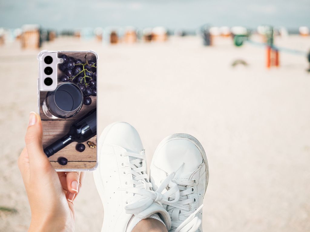 Ben je op zoek naar een uniek telefoonhoesje voor je Samsung Galaxy S22? Dan ben je bij B2C Telecom aan het juiste adres! Speciaal voor jou hebben we dit prachtige Wijn design in onze collectie hoesjes opgenomen. Het design wordt bedrukt op een Beschermhoes en is gemaakt van flexibel rubber. Het hoesje is perfect voor de actieve smartphonegebruiker door de opstaande randen/hoeken. Denk aan mensen die veel sporten, reizen of wandelen en net iets meer zekerheid willen als het op hun geliefde telefoon aankomt. Het design wordt alleen aan de bovenkant van het hoesje bedrukt en de randen blijven transparant. Aan de zijkanten zijn uitsparingen gemaakt waardoor je met gemak alle knoppen en poorten kunt bedienen. Wij adviseren om dit hoesje in combinatie met een screenprotector te gebruiken voor een langere levensduur van je telefoon. Wil je dit hoesje nog iets extra's geven? Voeg dan gratis je naam of een quote toe! Is dit design hoesje toch niet helemaal wat je zocht? Ontwerp dan zelf een hoesje in ons ontwerpprogramma.