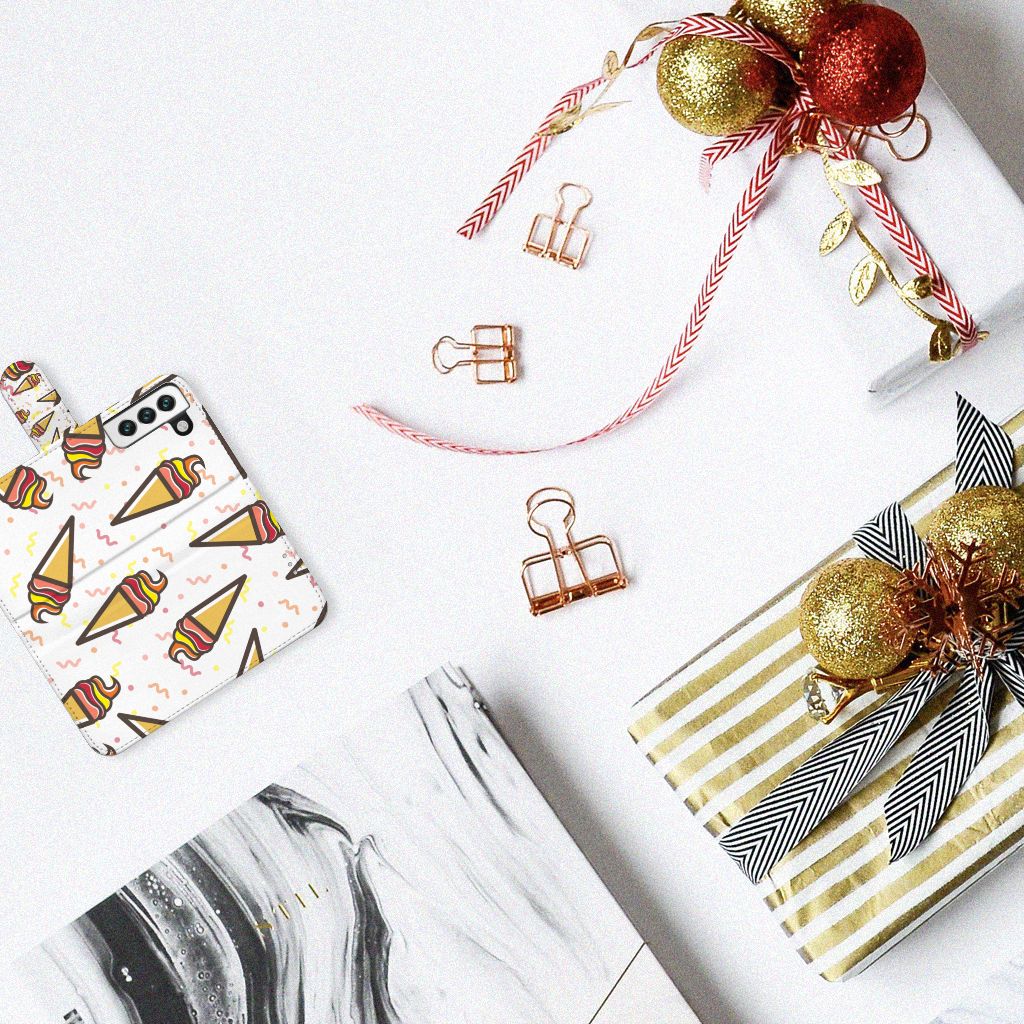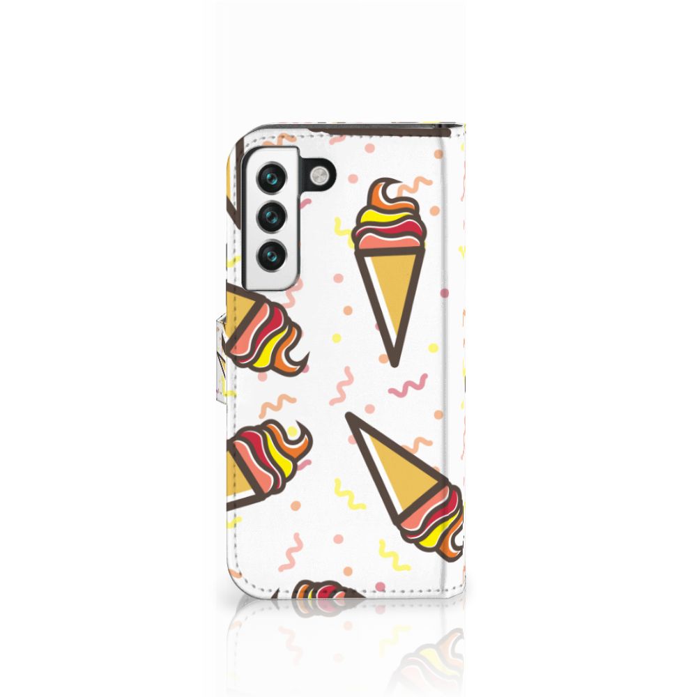 Een vrolijk Samsung Galaxy S22 Book Cover met daarop verschillende ijsjes. Als je daar geen zomers gevoel meer van krijgt, weten wij het ook niet meer. De zomer en ijsjes zijn onlosmakelijk met elkaar verbonden. Tijdens een bezoekje aan het strand mag een lekker ijsje bijvoorbeeld niet ontbreken. Een design hoesje met lekkere Icecream print past daar natuurlijk ook ontzettend goed bij. Jouw telefoon is helemaal beschermd met een boekhoesje met ijsjes design. De aankoop van deze case is een heerlijke investering, die zich gegarandeerd terugbetaalt. Alle zijden van dit hoesje worden bedrukt met ijsjes. De case heeft een lipje aan de buitenzijde voor het afsluiten van de telefoon en de houder aan de binnenzijde is van TPU. Onder alle weersomstandigheden zal deze case met verschillende opbergvakjes perfect functioneren, ook in de zomer met een ijsje in je hand. Dit smaakvolle hoesje is zeer goedkoop te bestellen en wordt zeer snel bezorgd.